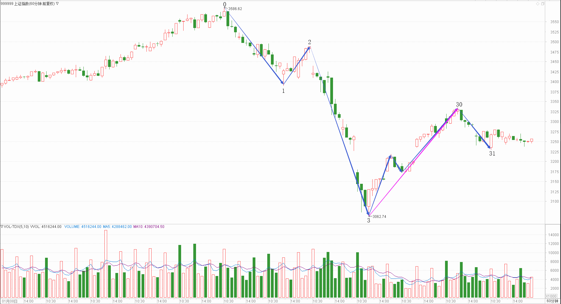 : 月线调整周线中继日线回调时线下跌分线调整(0.25+0.15+0.15+0.25+0.15)/5*100=19