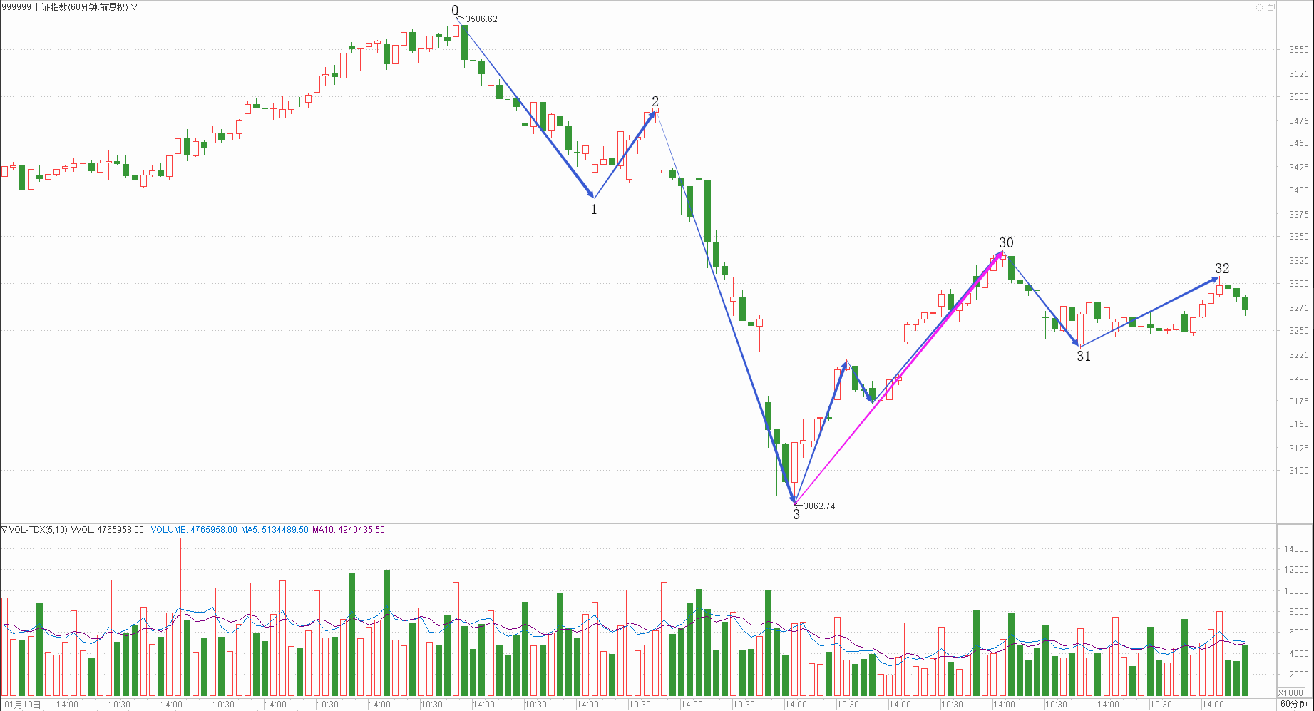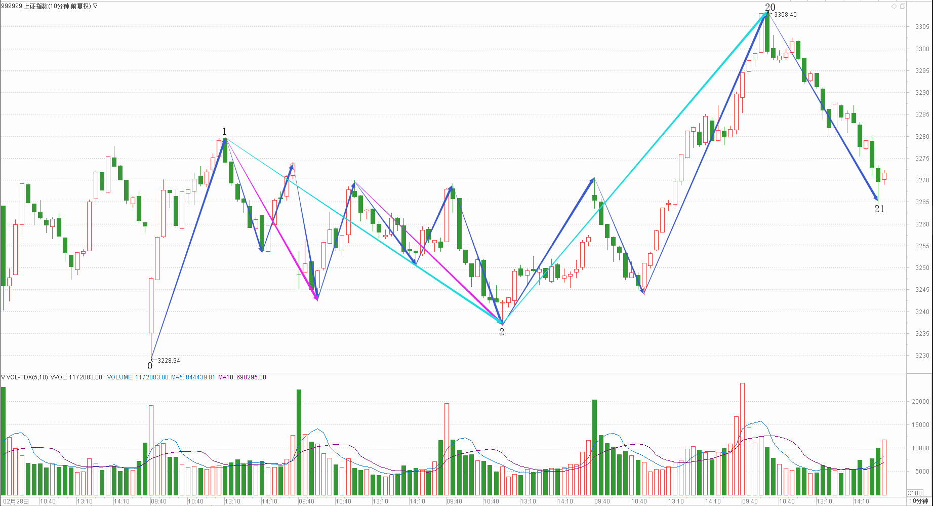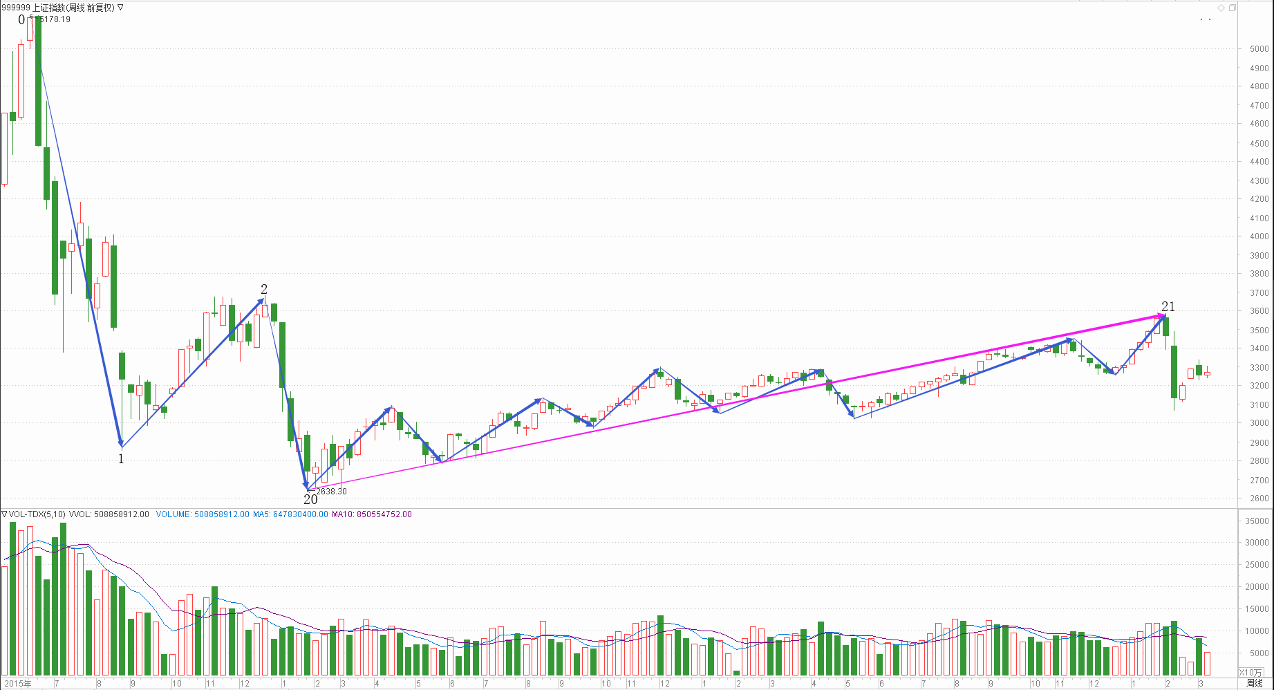 : 月线调整周线中继日线回调时线下跌分线中继(0.25+0.15+0.15+0.15+0.25)/5*100=19