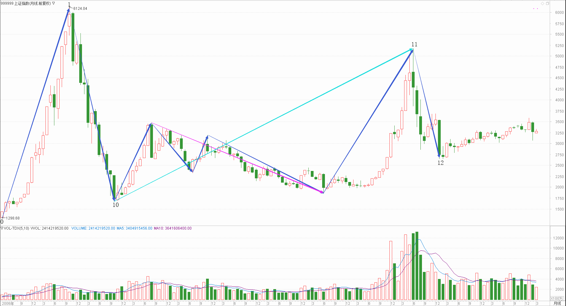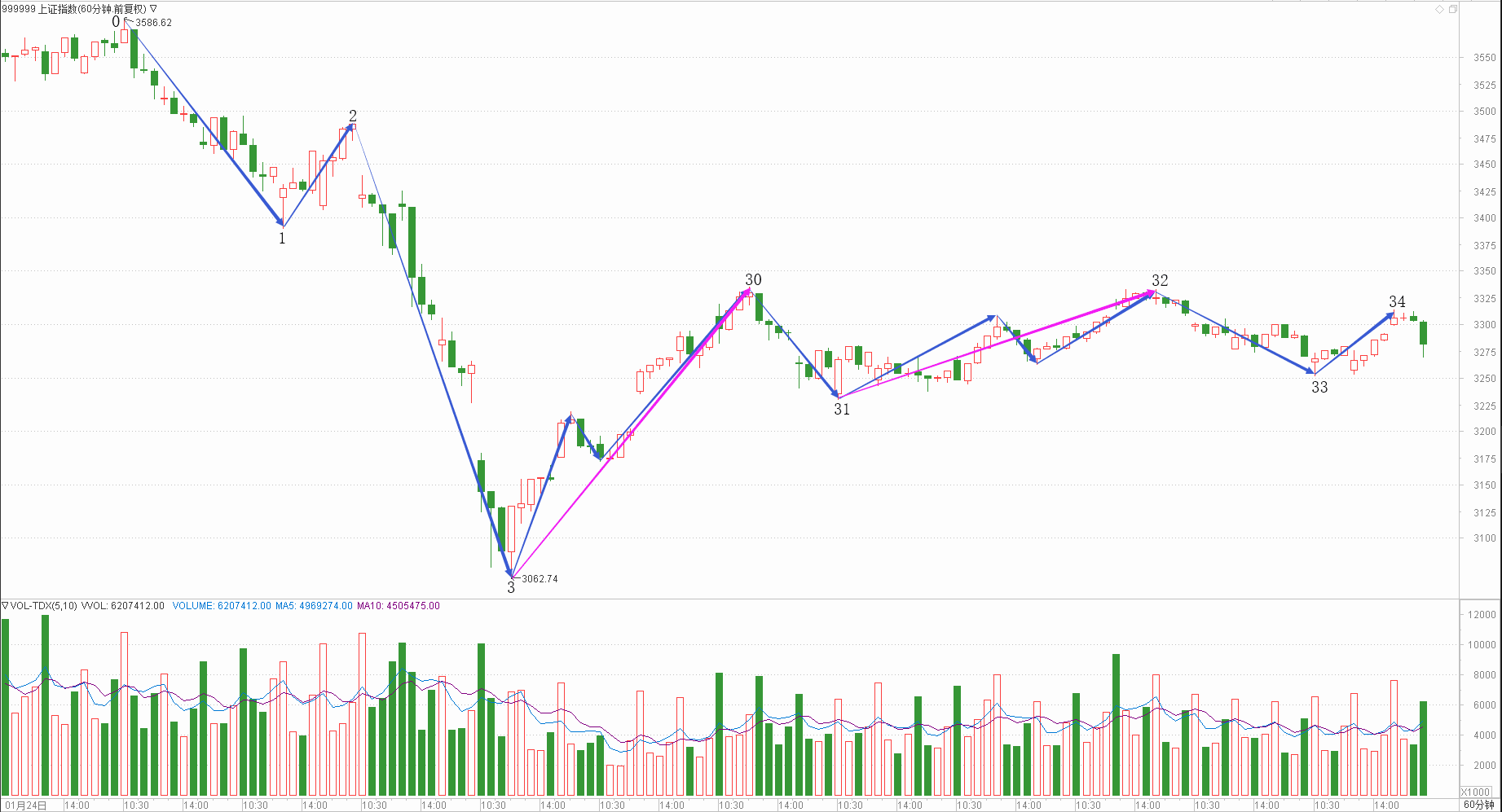 : 月线调整周线中继日线回调时线下跌分线中继(0.25+0.2+0.15+0.2+0.25)/5*100=21