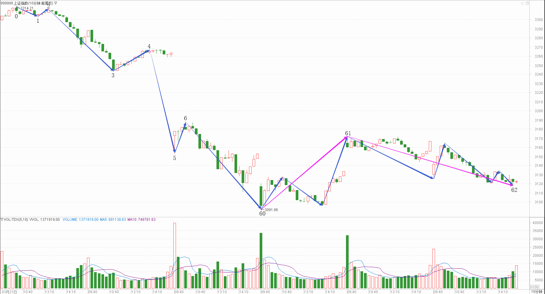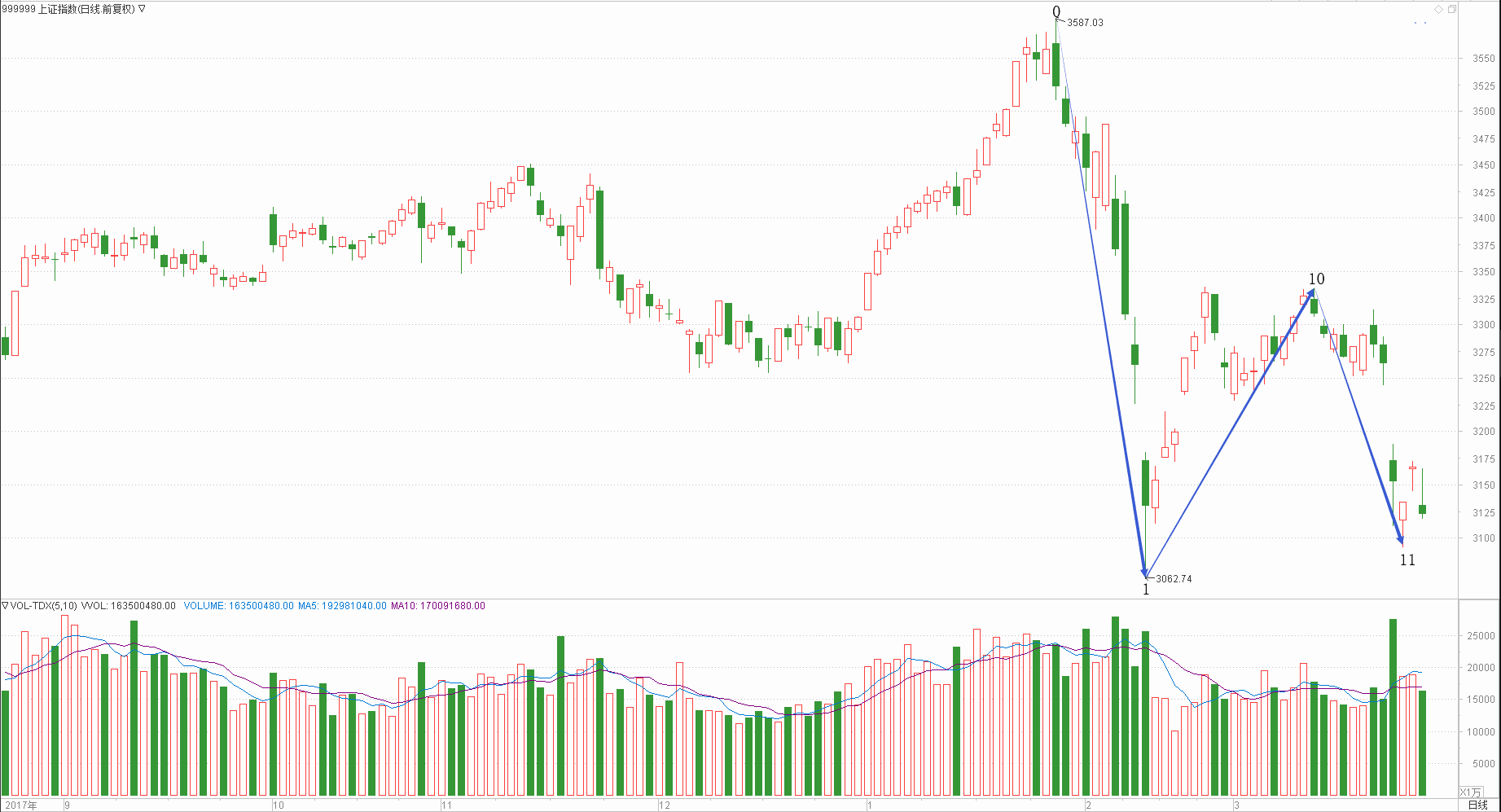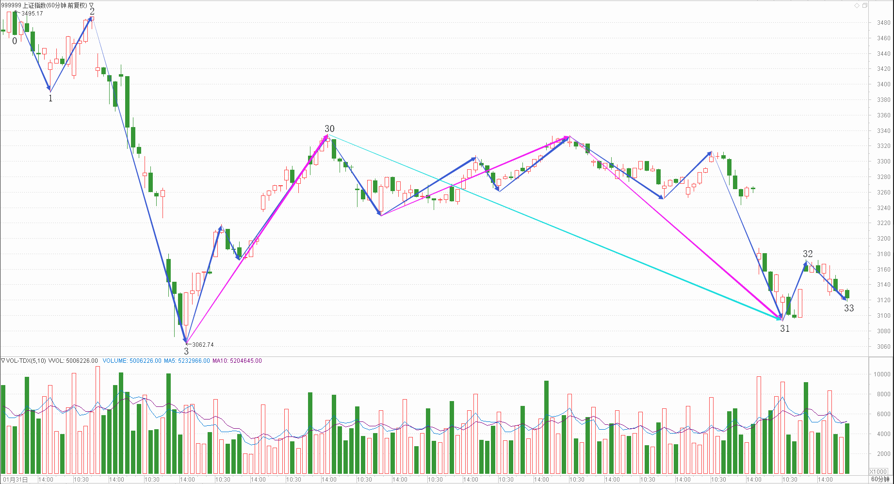 : 月线调整周线中继日线调整时线下跌分线趋势(25+15+25+25+25)/5*100=23