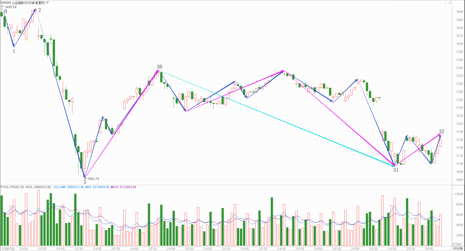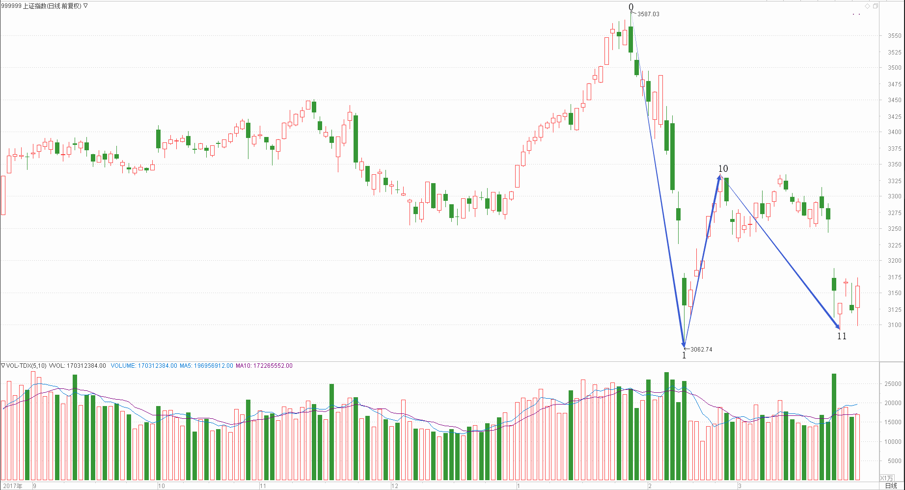 : 月线调整周线中继日线调整时线下跌分线下跌(25+15+25+15+15)/5*100=19