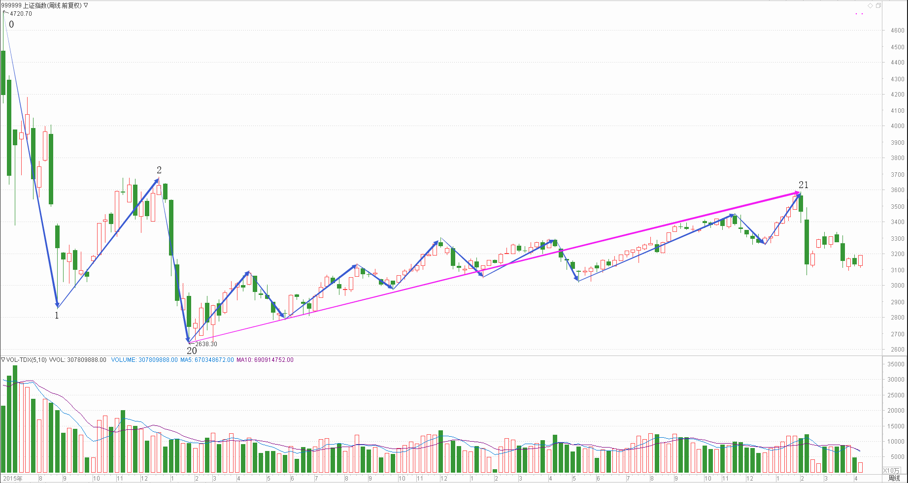 : 月线调整周线中继日线调整时线调整分线回调(25+15+20+20+15)/5*100=19