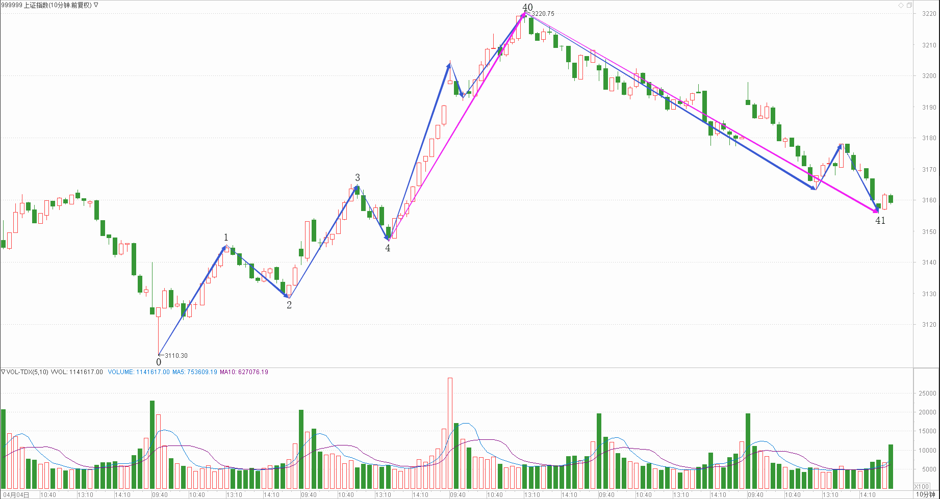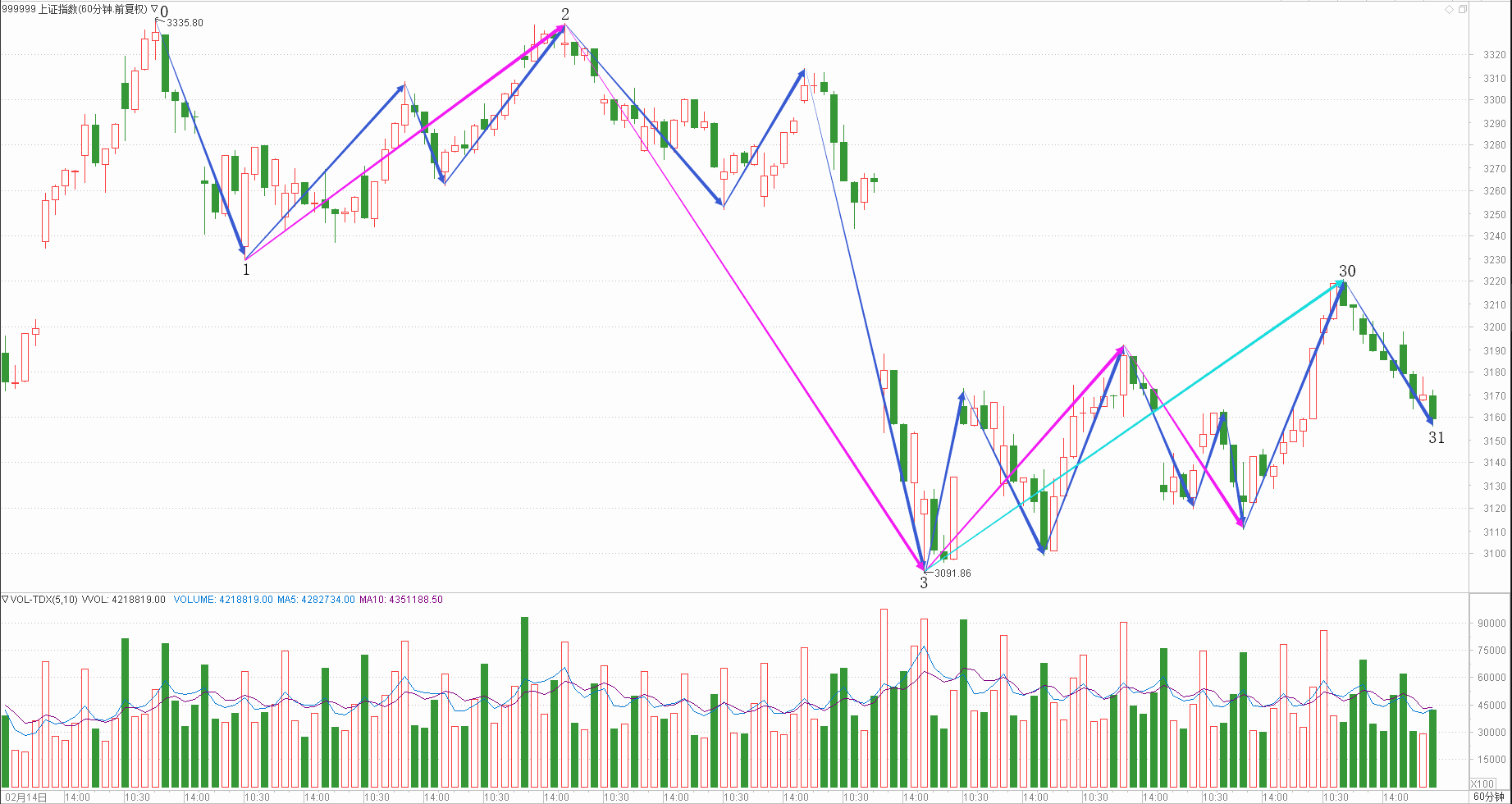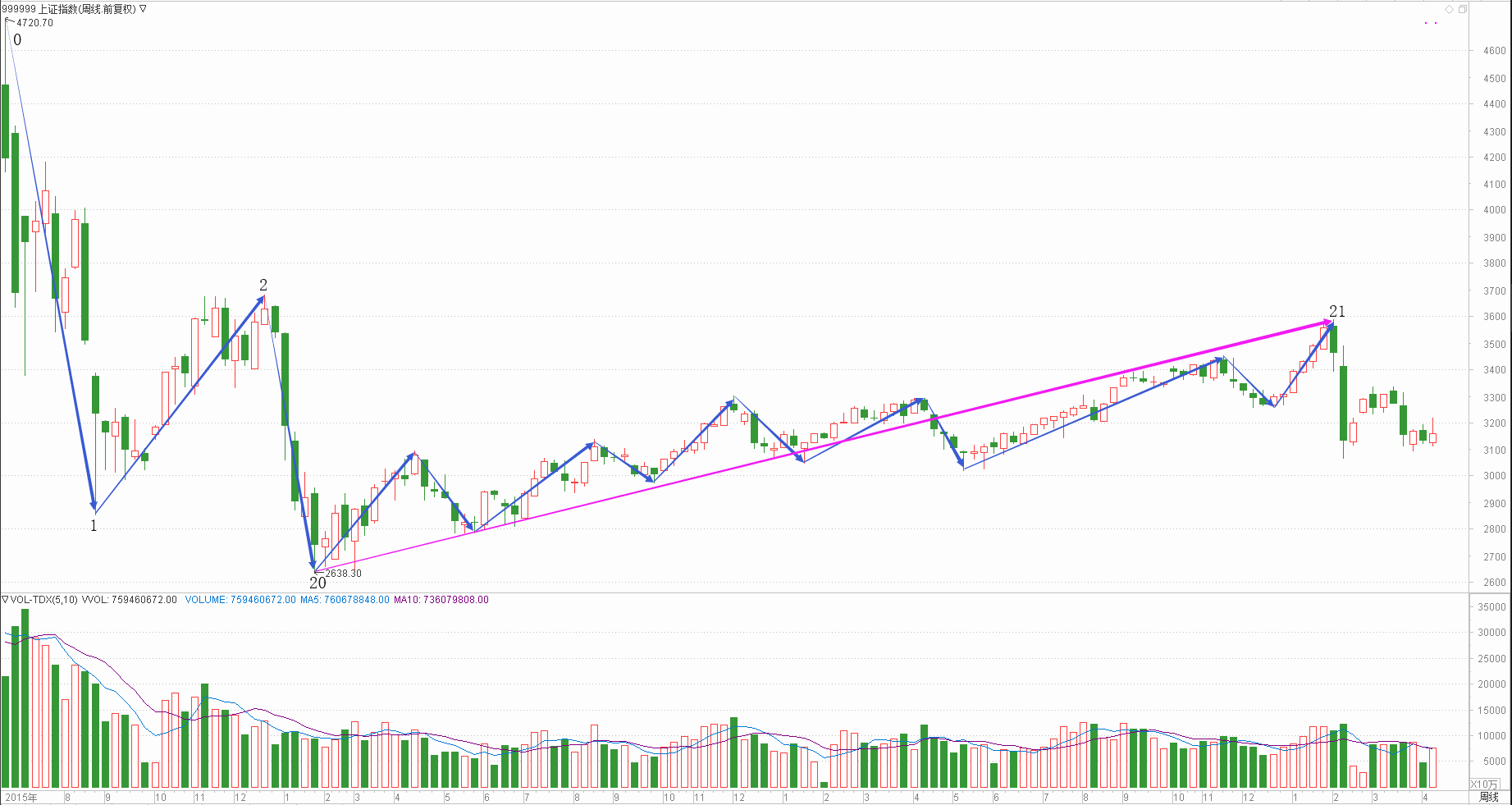 : 月线调整周线中继日线调整时线下跌分线上涨(25+15+15+25+25)/5=21
