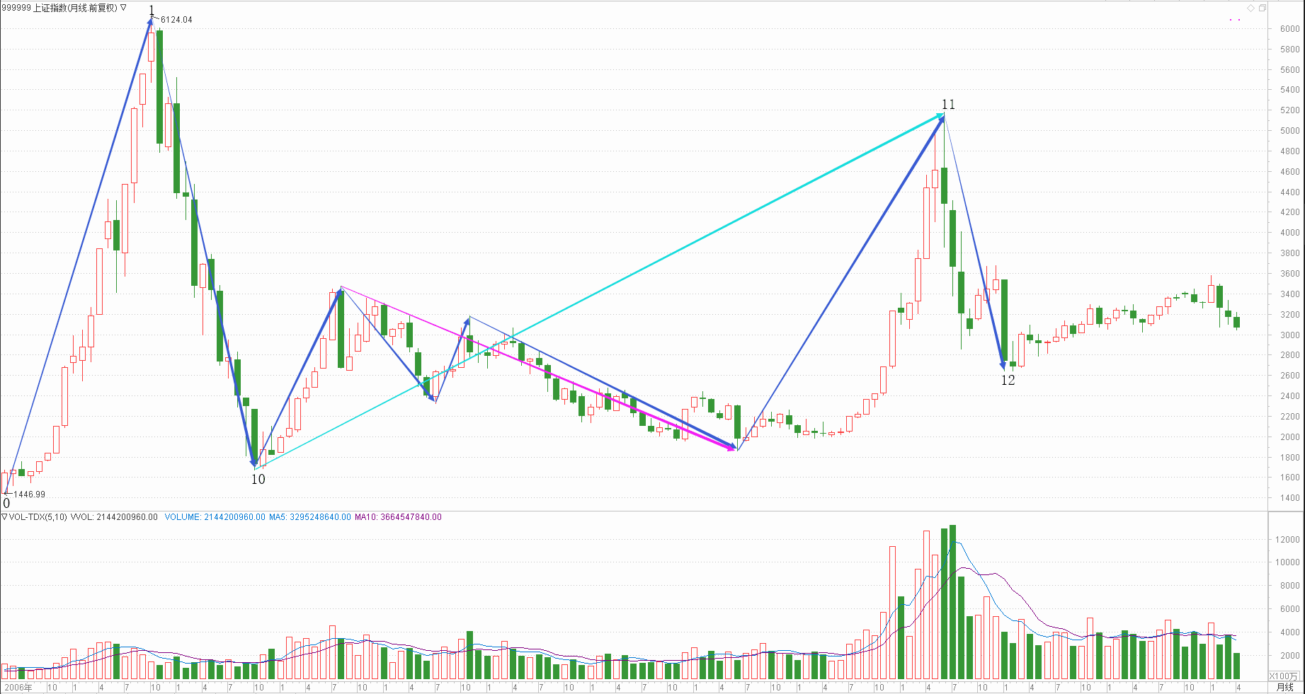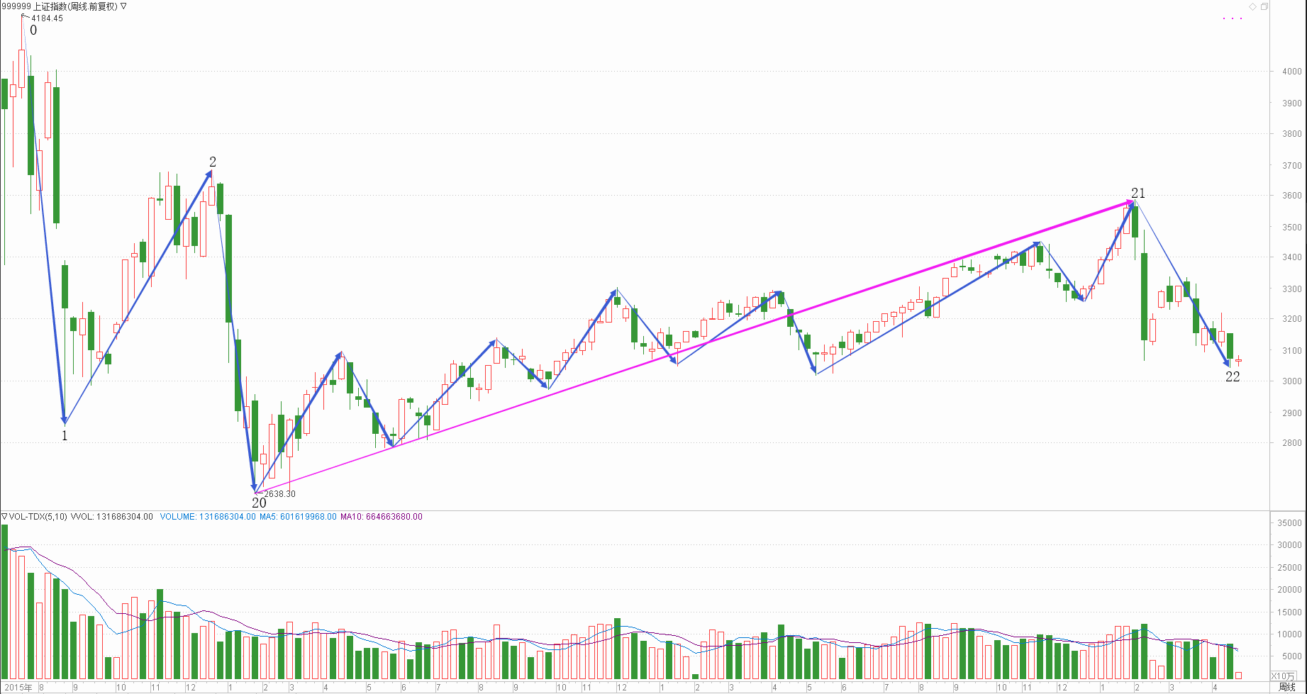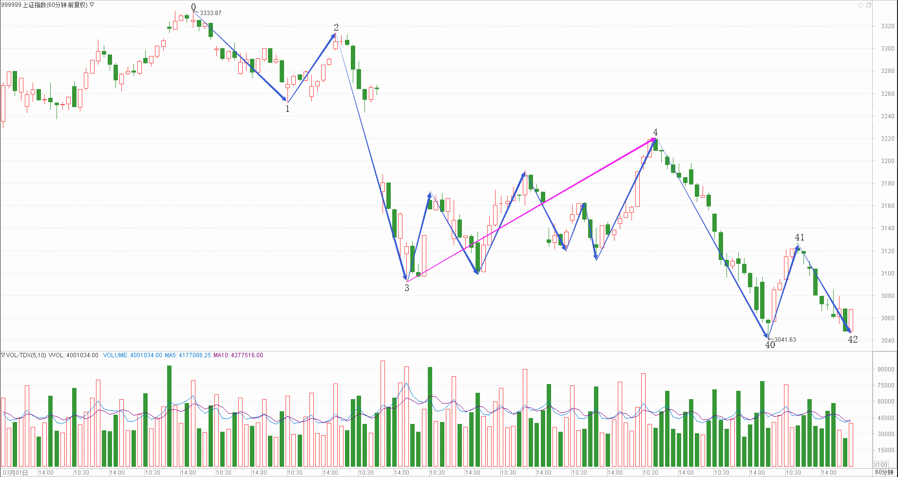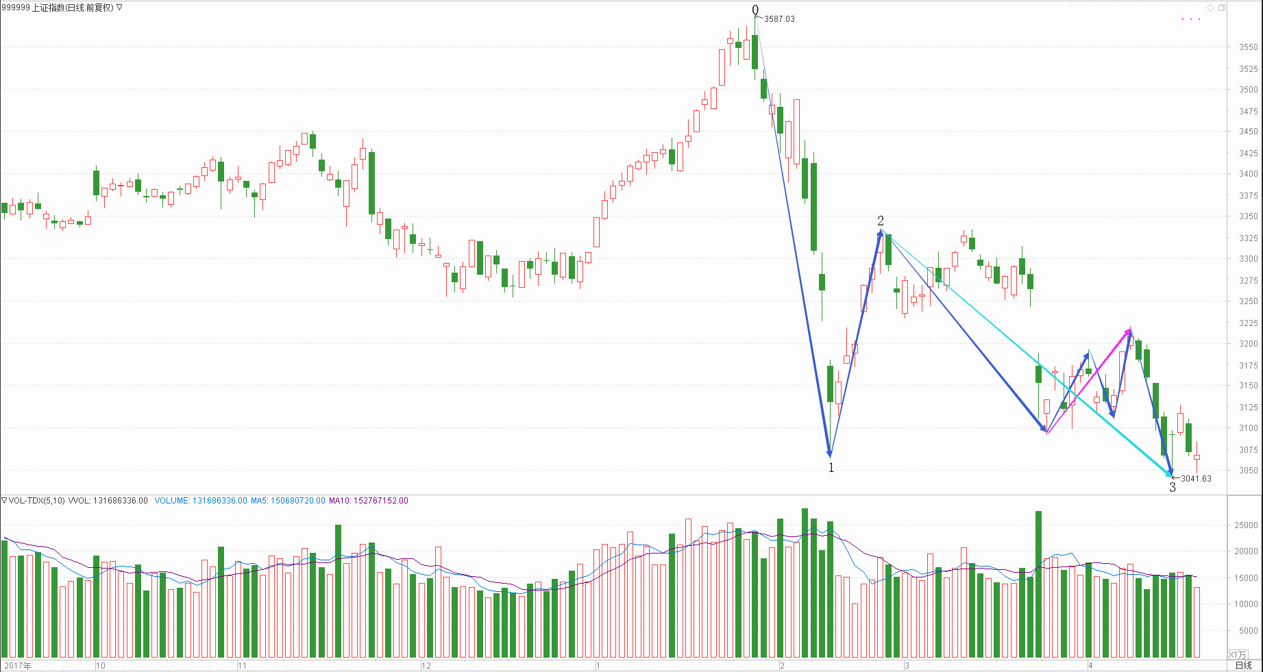 : 月线调整周线中继日线下跌时线下跌分线调整(30+40+50+25+20)/5=33