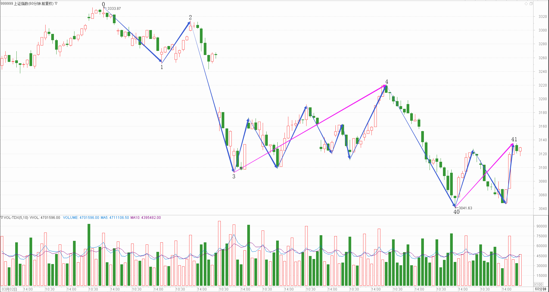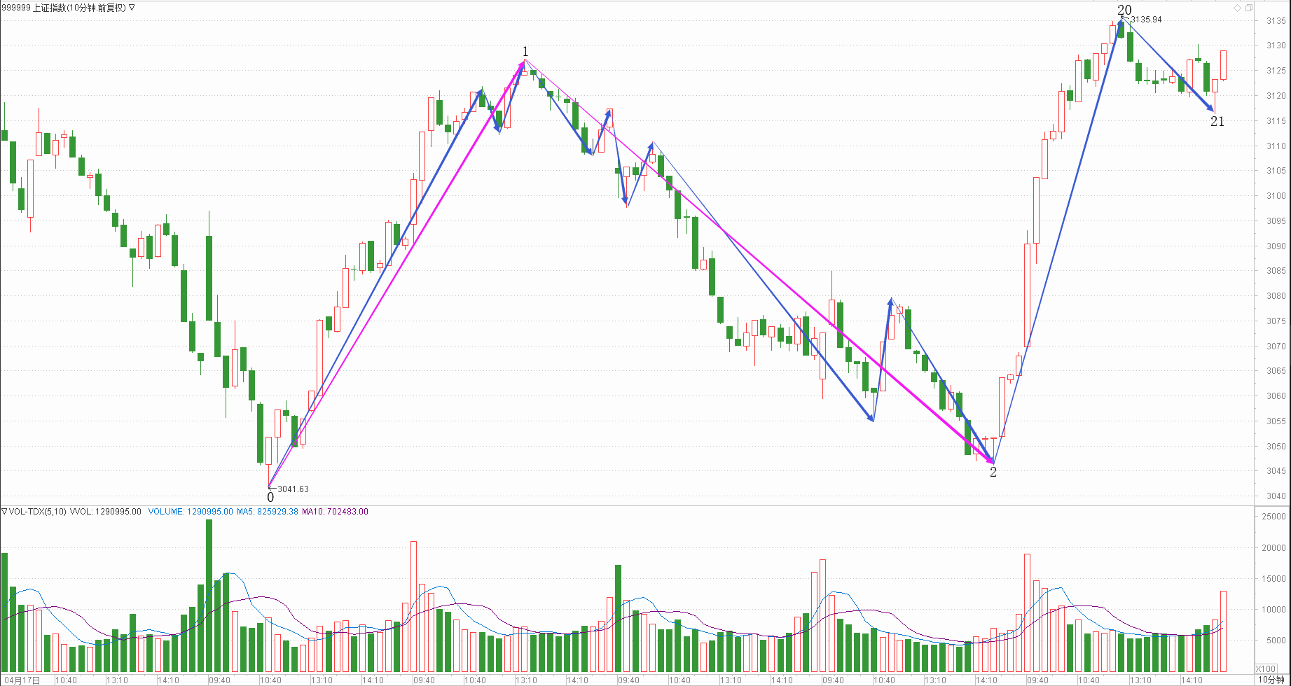 : 月线调整周线中继日线下跌时线下跌分线上涨(25+30+30+20+25)/5=26