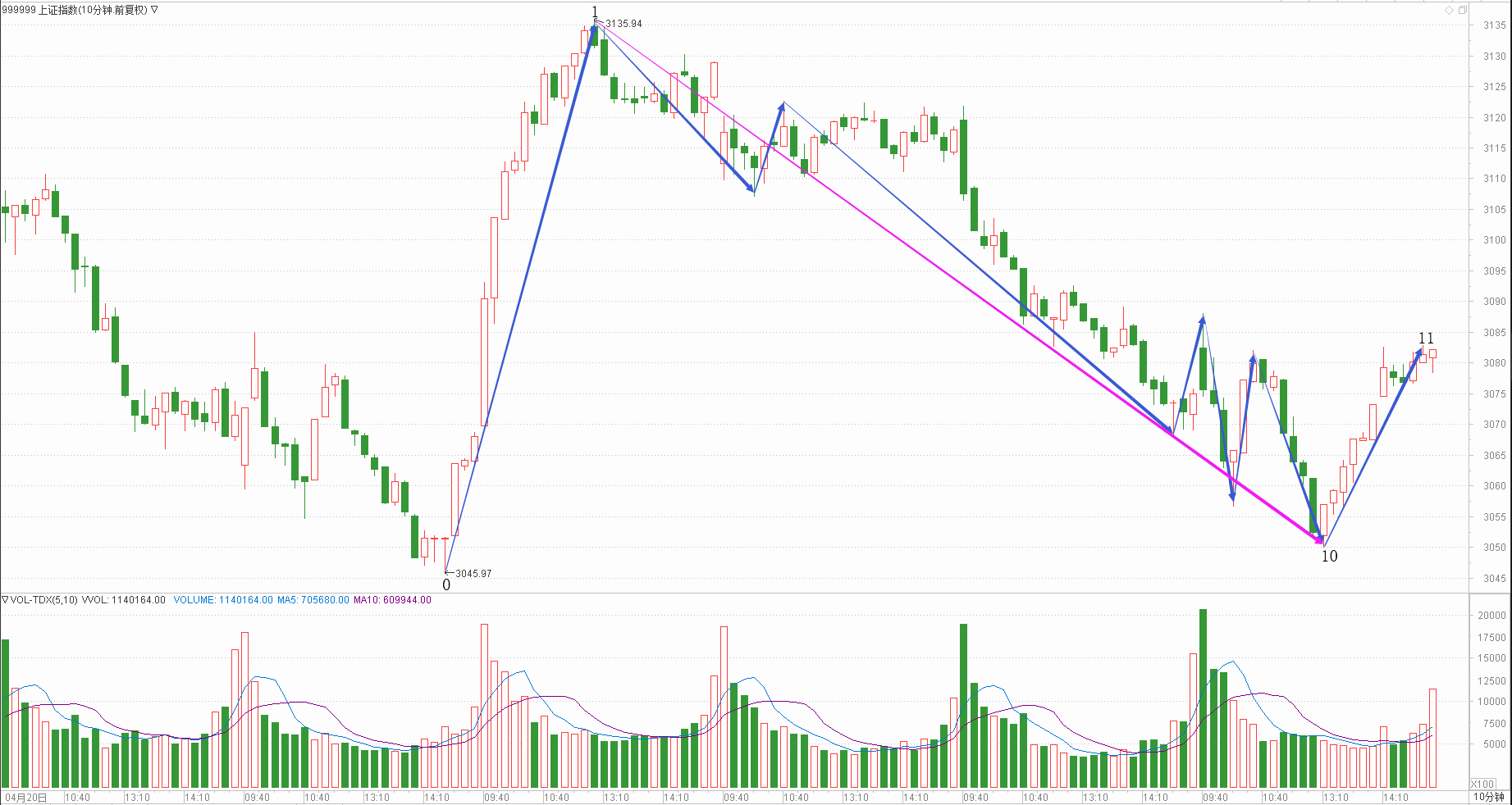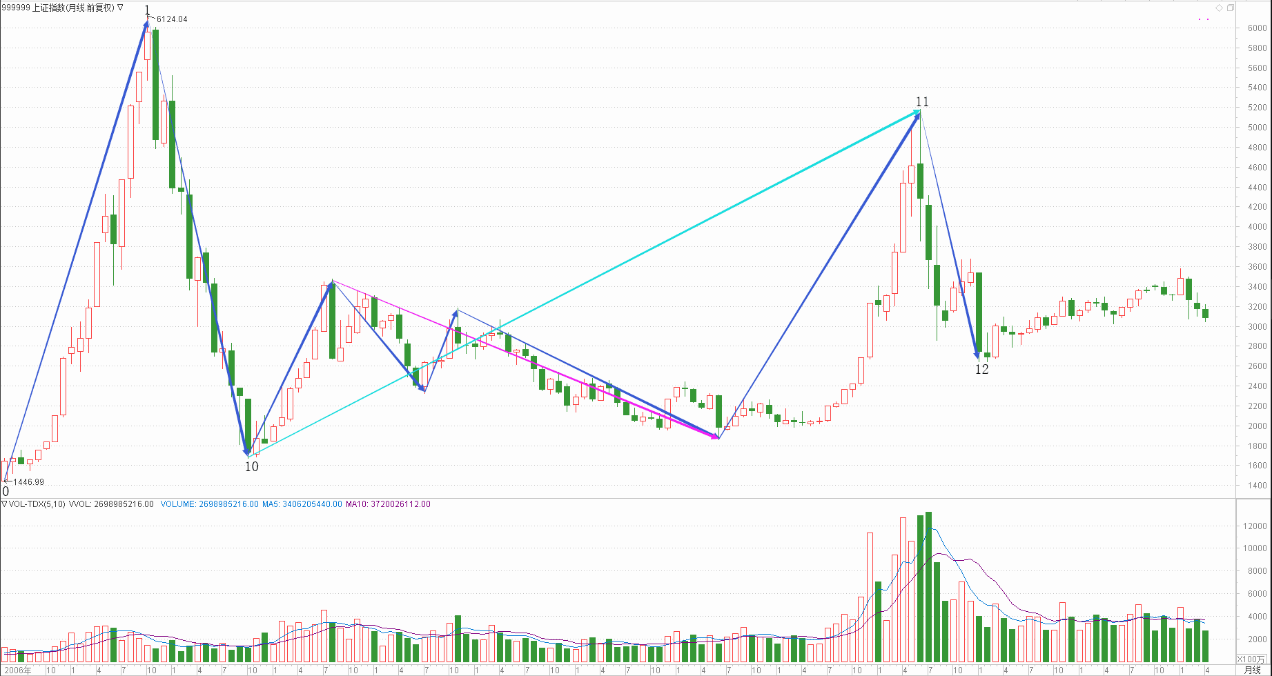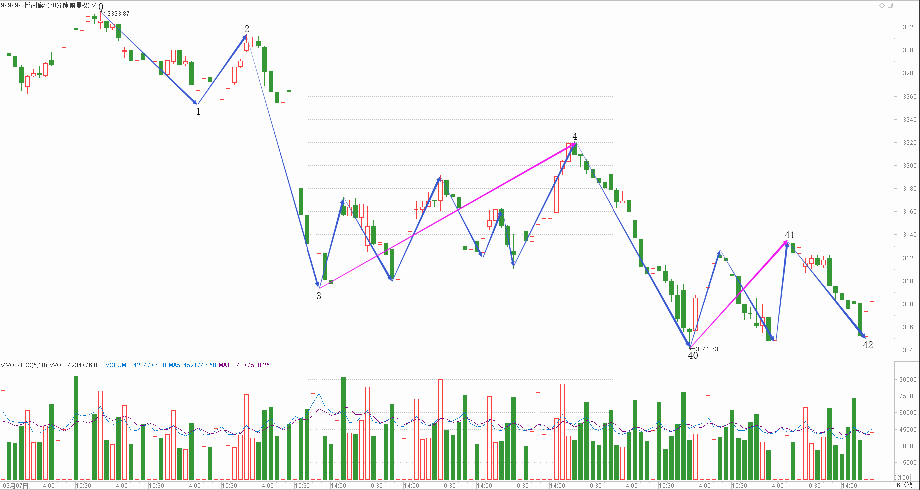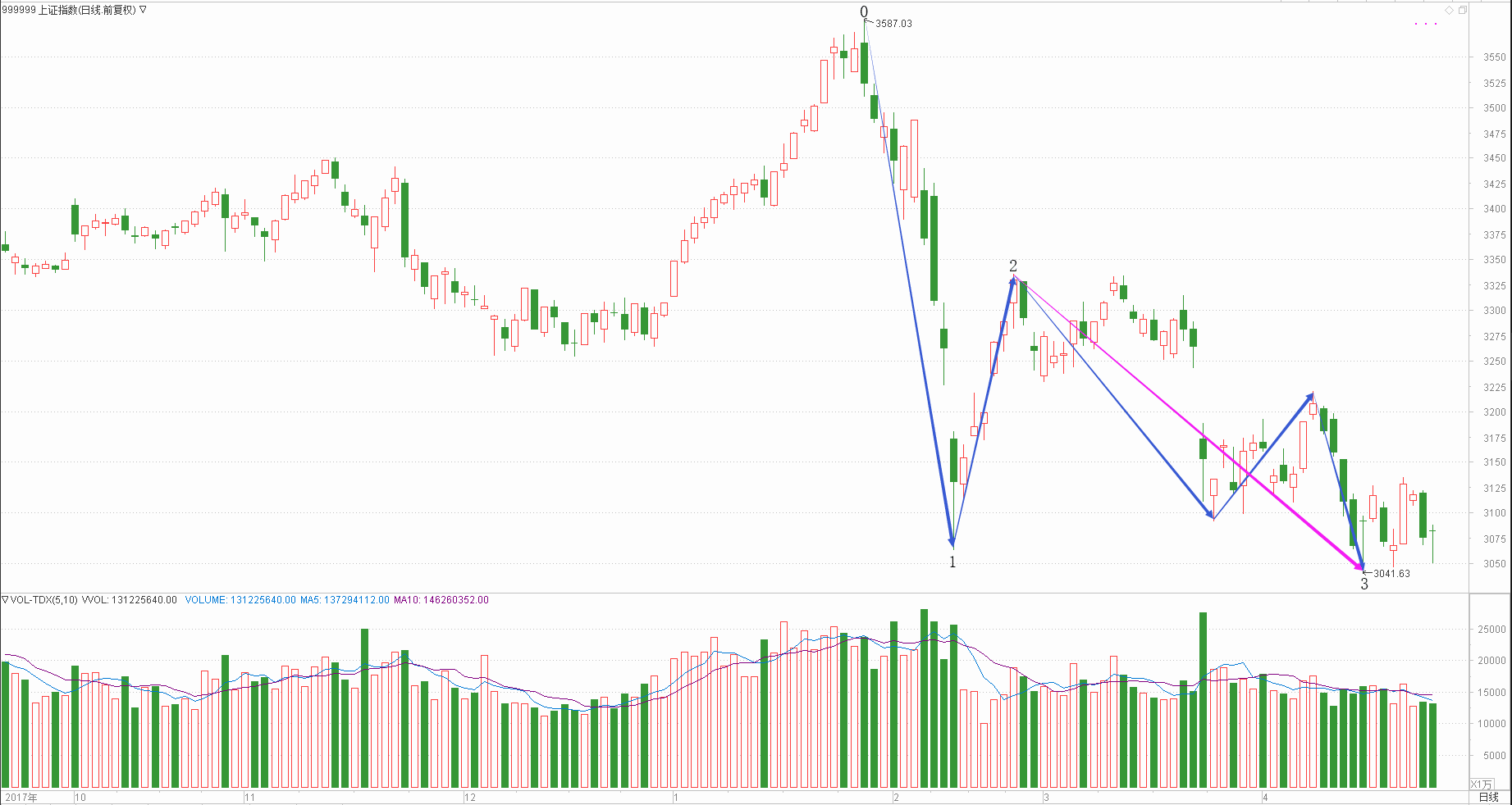 : 月线调整周线中继日线下跌时线下跌分线调整(30+40+30+30+10)/5=28