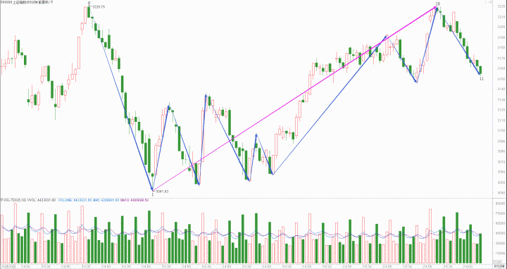 : 月线调整周线调整日线中继时线调整分线回调(30+25+25+40+50)/5=34