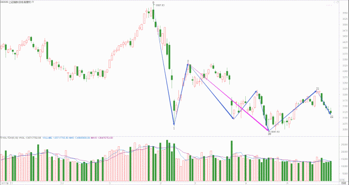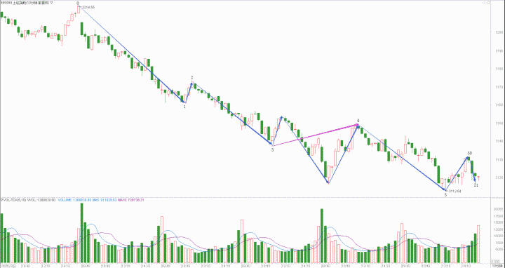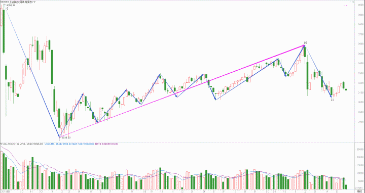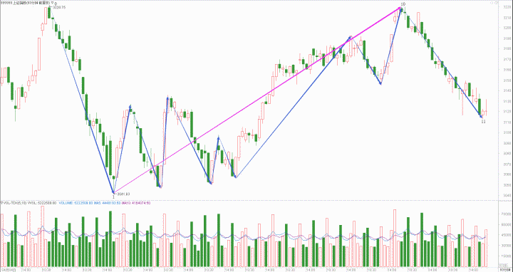 : 月线调整周线调整日线中继时线调整分线趋势(30+25+40+50+40)/5=37