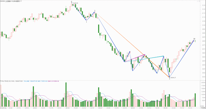 : 月线调整周线调整日线下跌时线中继分线下跌(30+30+20+20+15)/5=23
