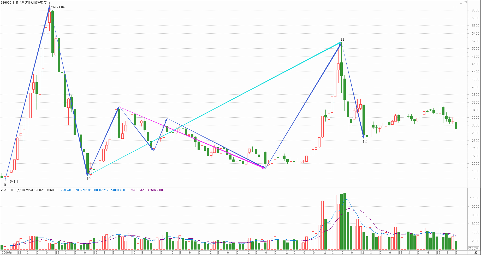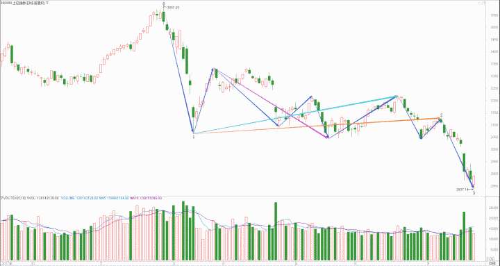 : 月线调整周线调整日线下跌时线下跌分线趋势(30+30+40+20+20)/5=28