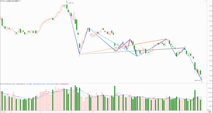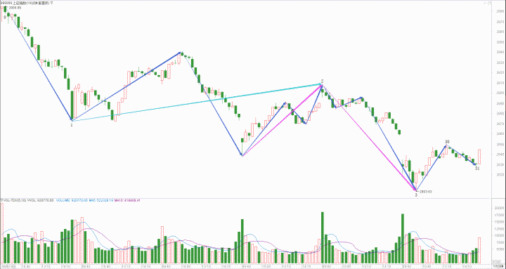 : 月线调整周线调整日线下跌时线趋势分线下跌(30+30+25+20+40)/5=29