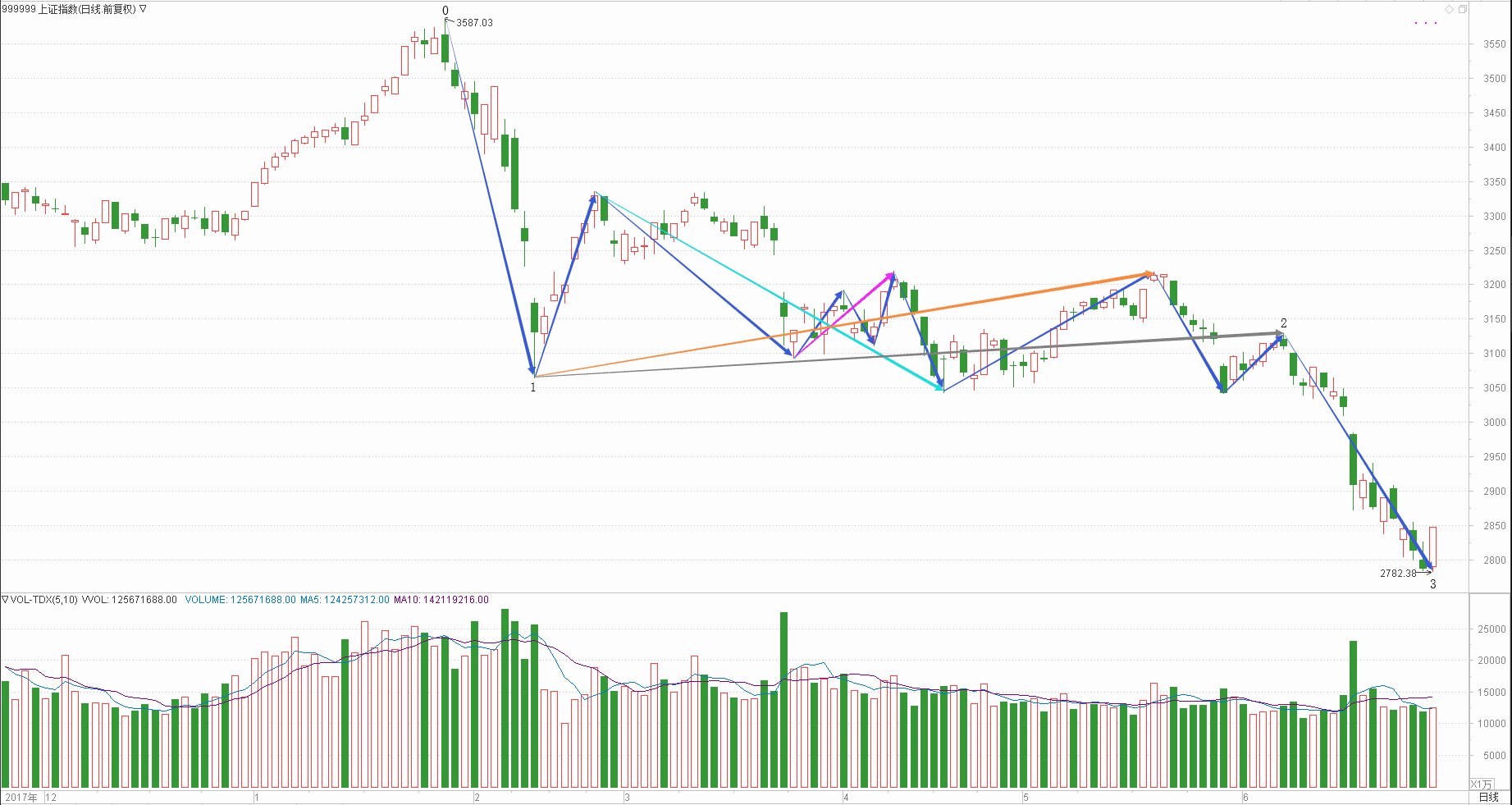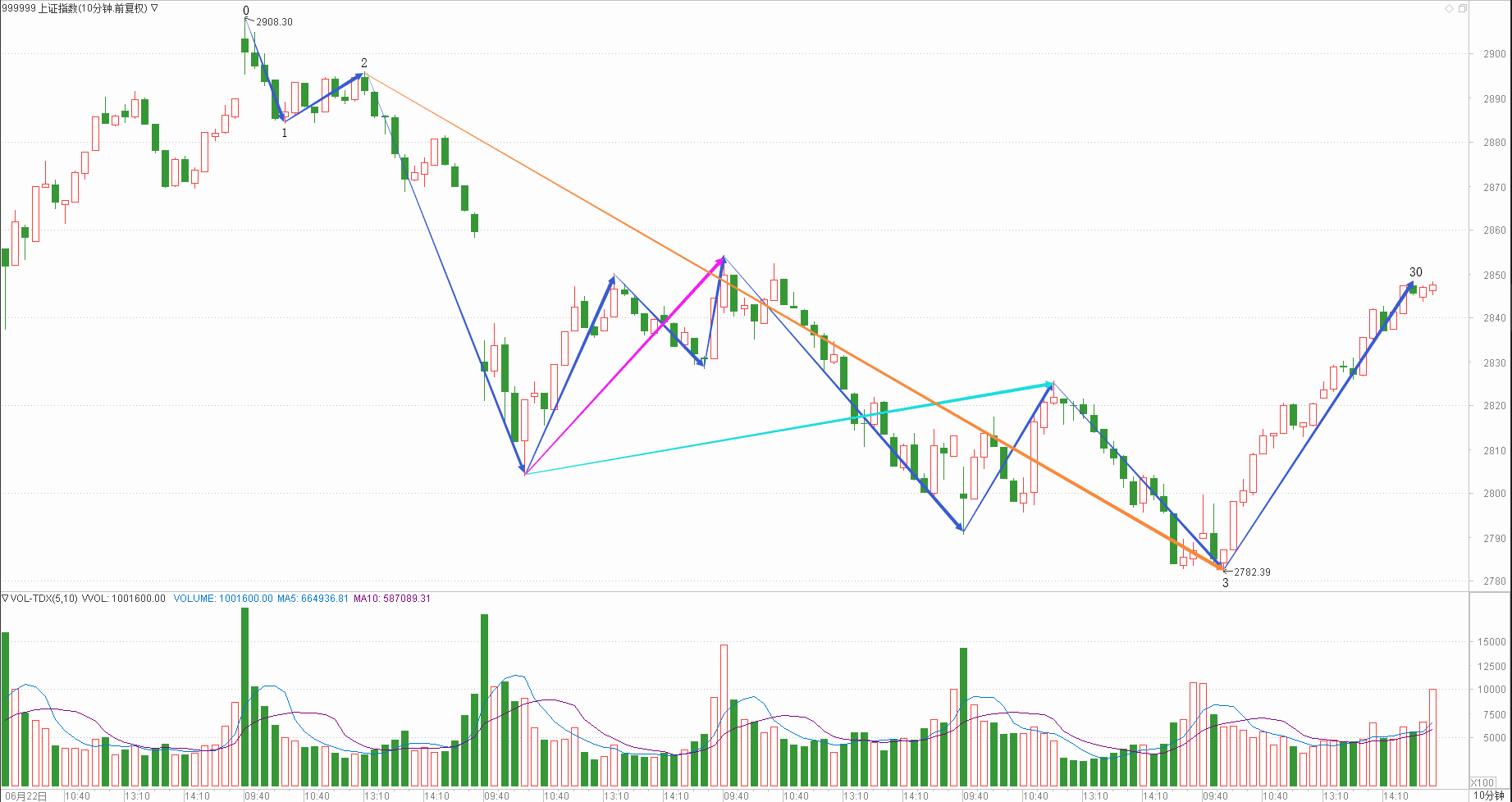 : 月线调整周线调整日线下跌时线下跌分线下跌(30+30+30+20+20)/5=26