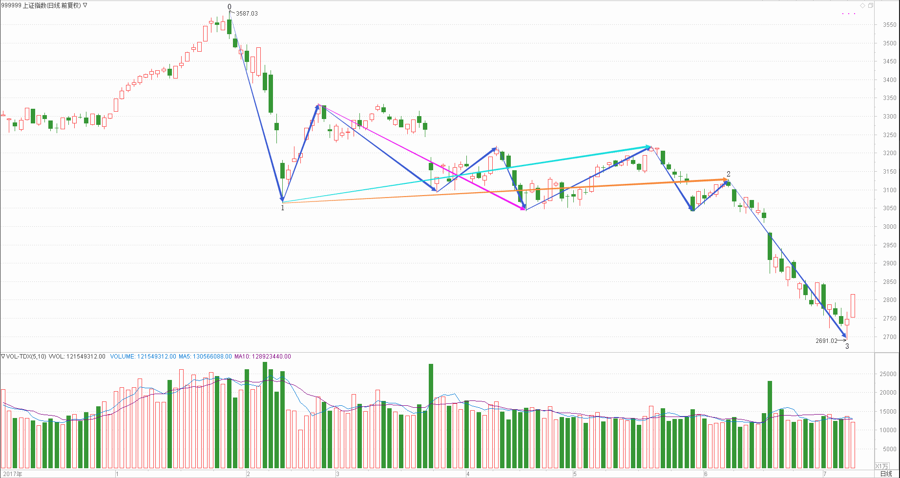 : 月线调整周线调整日线下跌时线趋势分线回调(30+30+30+15+10)/5=23分析 | 上证指数 | 2018年7月10日联线理论持仓安全系数:23%