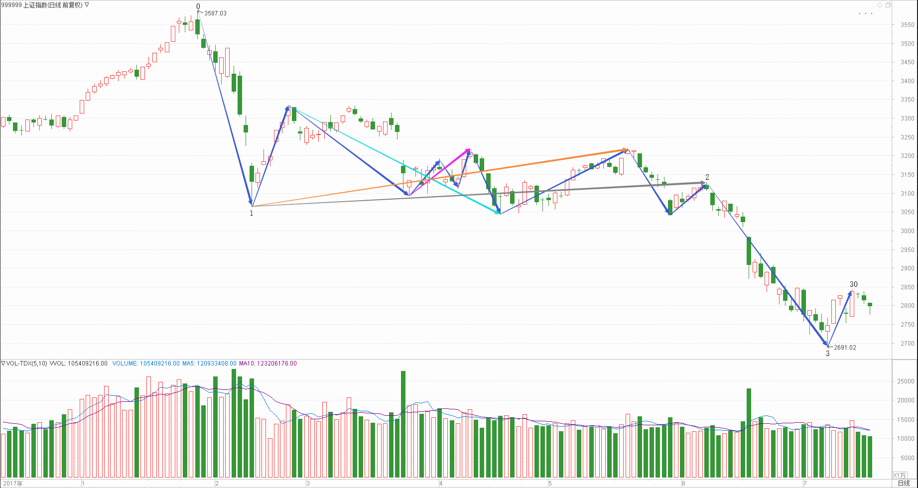 : 月线调整周线调整日线下跌时线下跌分线调整(30+30+30+30+25)/5=29