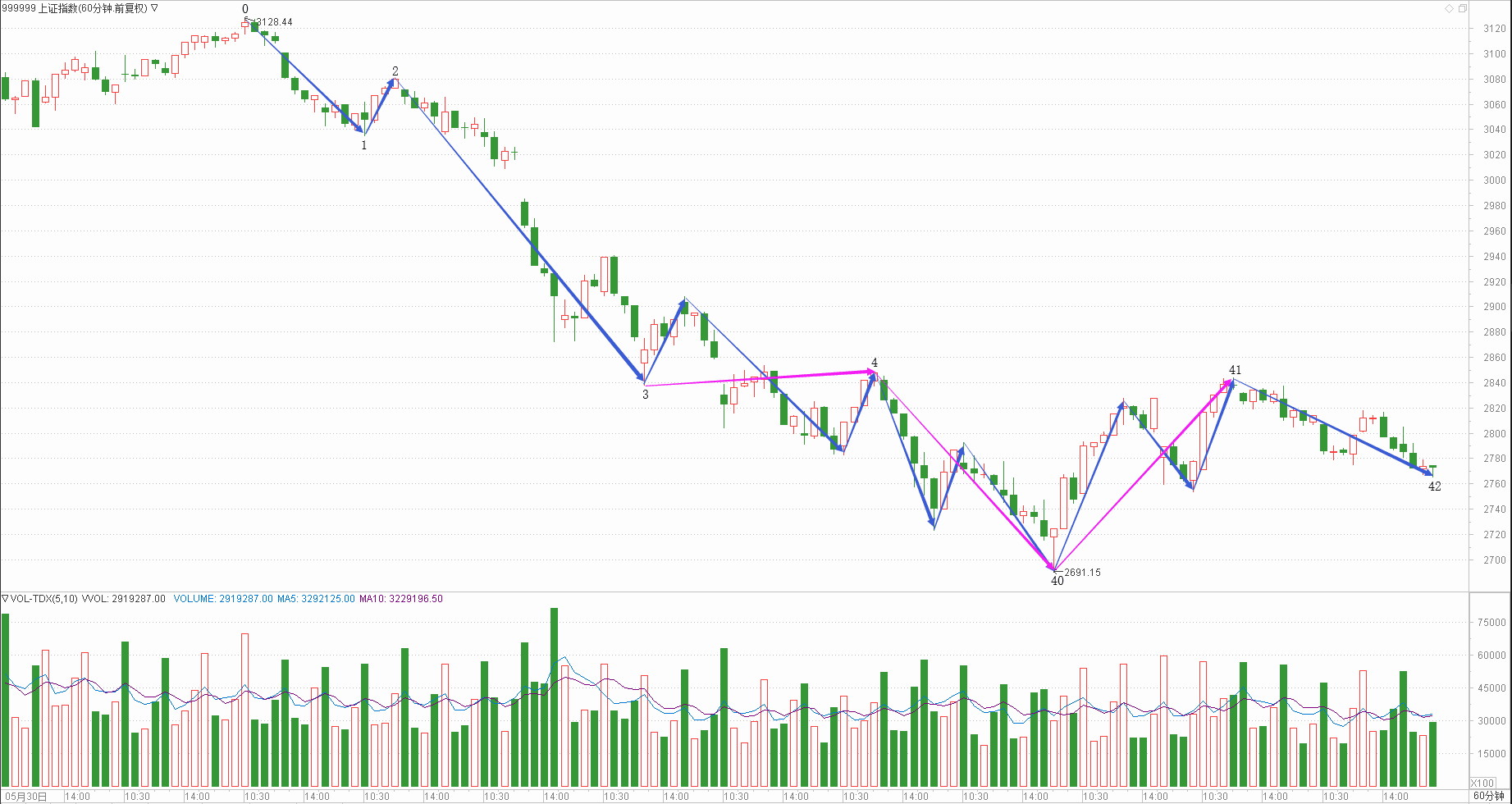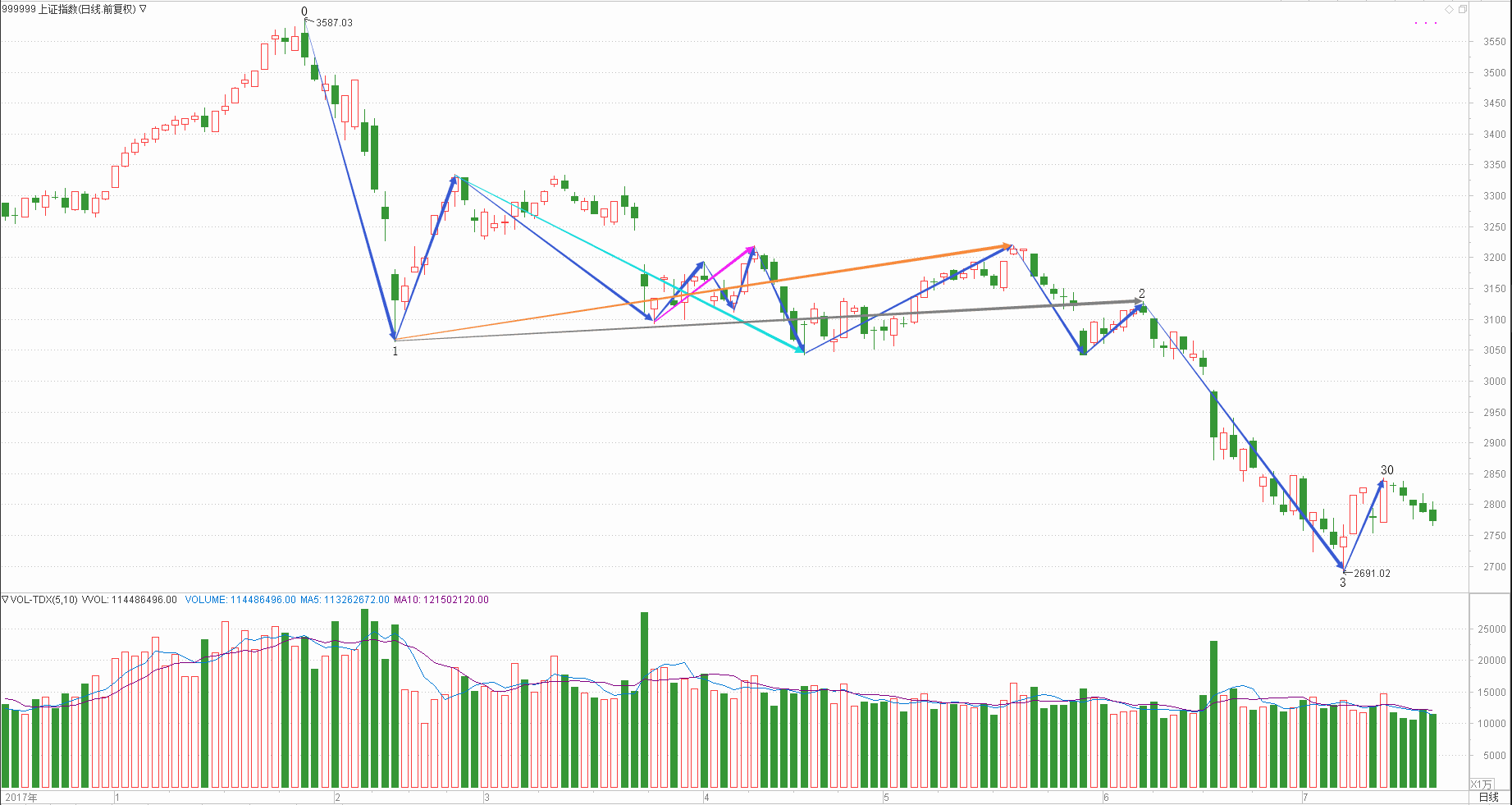 : 月线调整周线调整日线下跌时线下跌分线下跌(30+30+30+30+25)/5*100=29