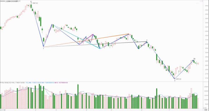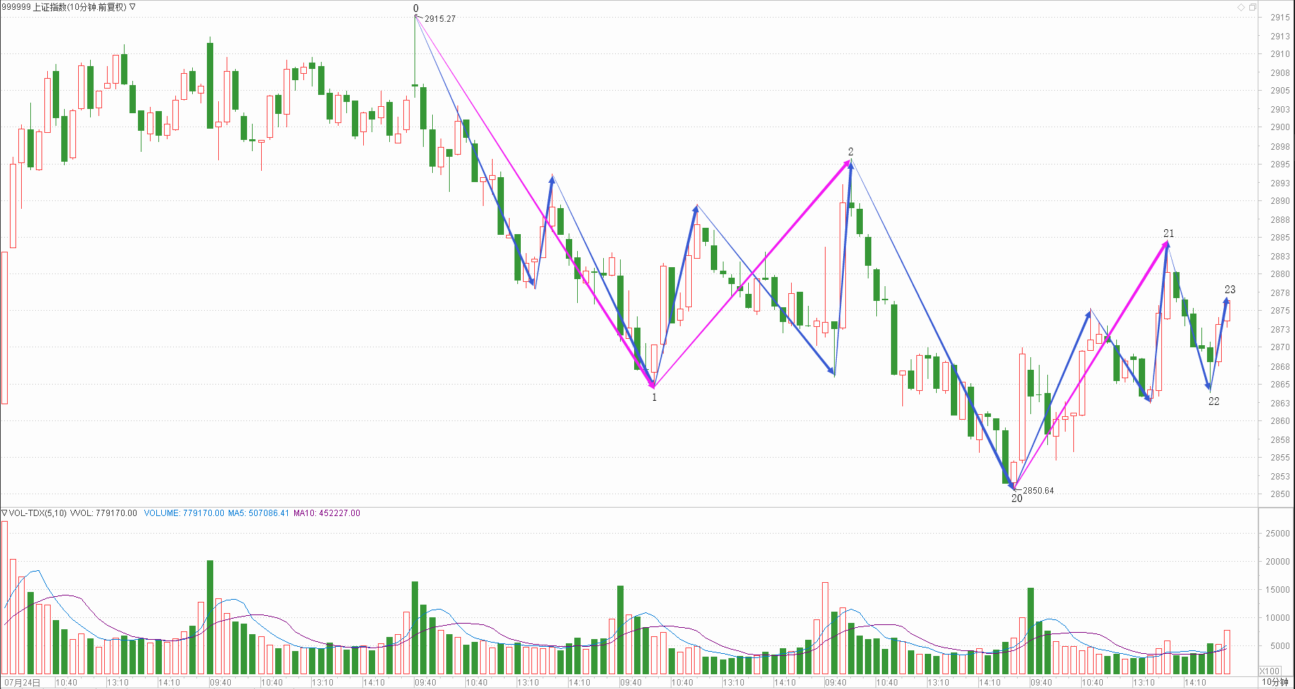 : 月线调整周线调整日线下跌时线调整分线中继(30+30+20+21+20)/5=24.2