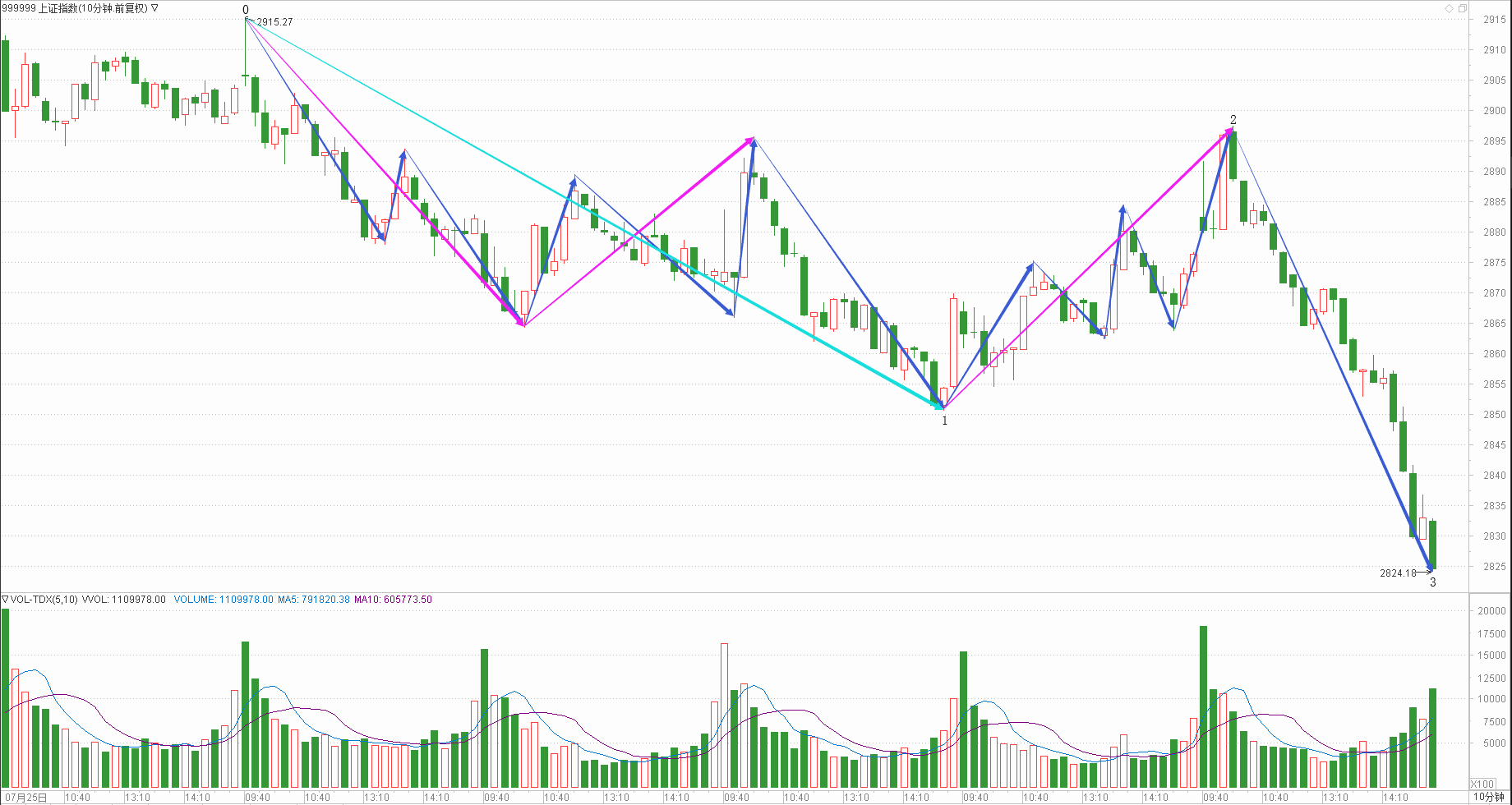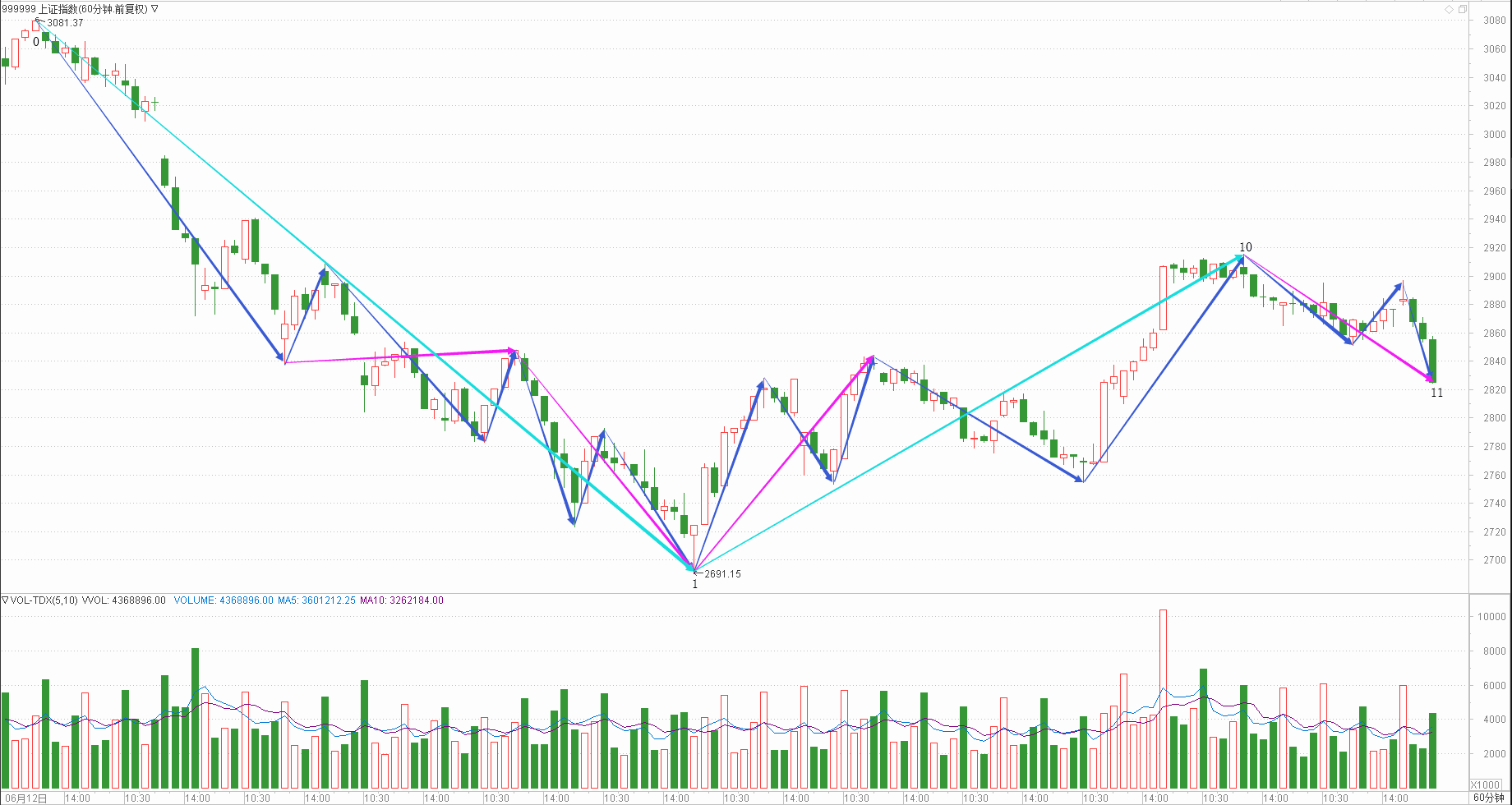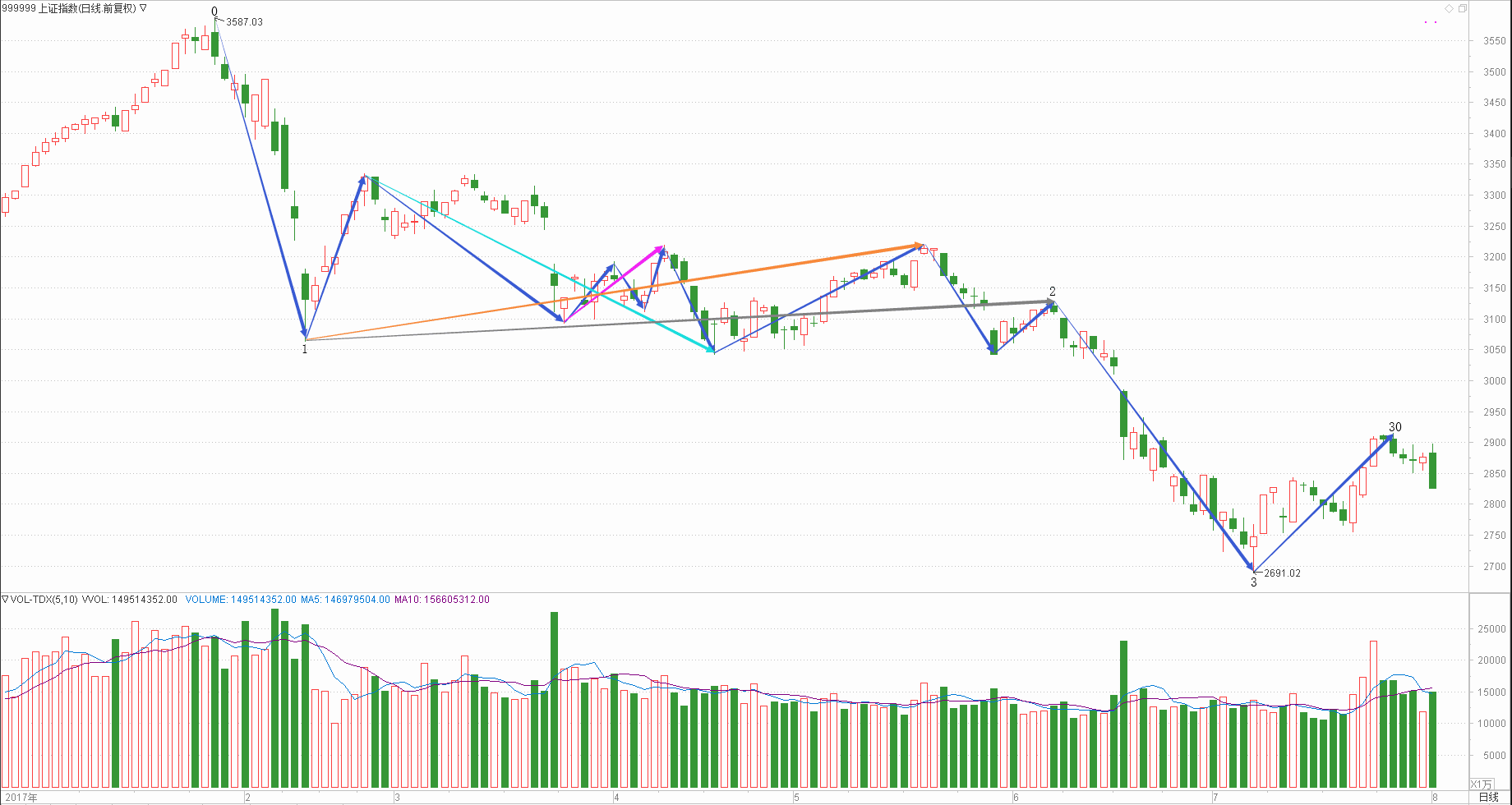 : 月线调整周线调整日线下跌时线调整分线调整(30+30+21+30+25)/5=27.2