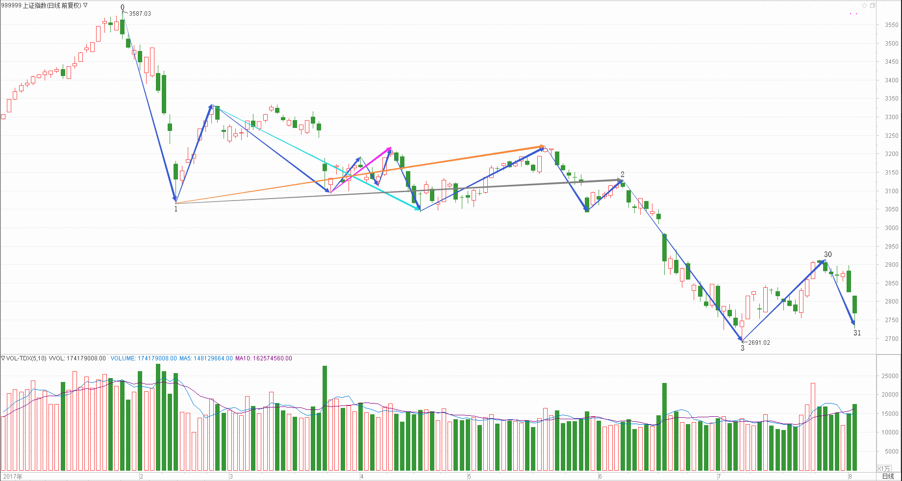 : 月线调整周线调整日线下跌时线调整分线调整(30+30+20+19+35)/5=26.8