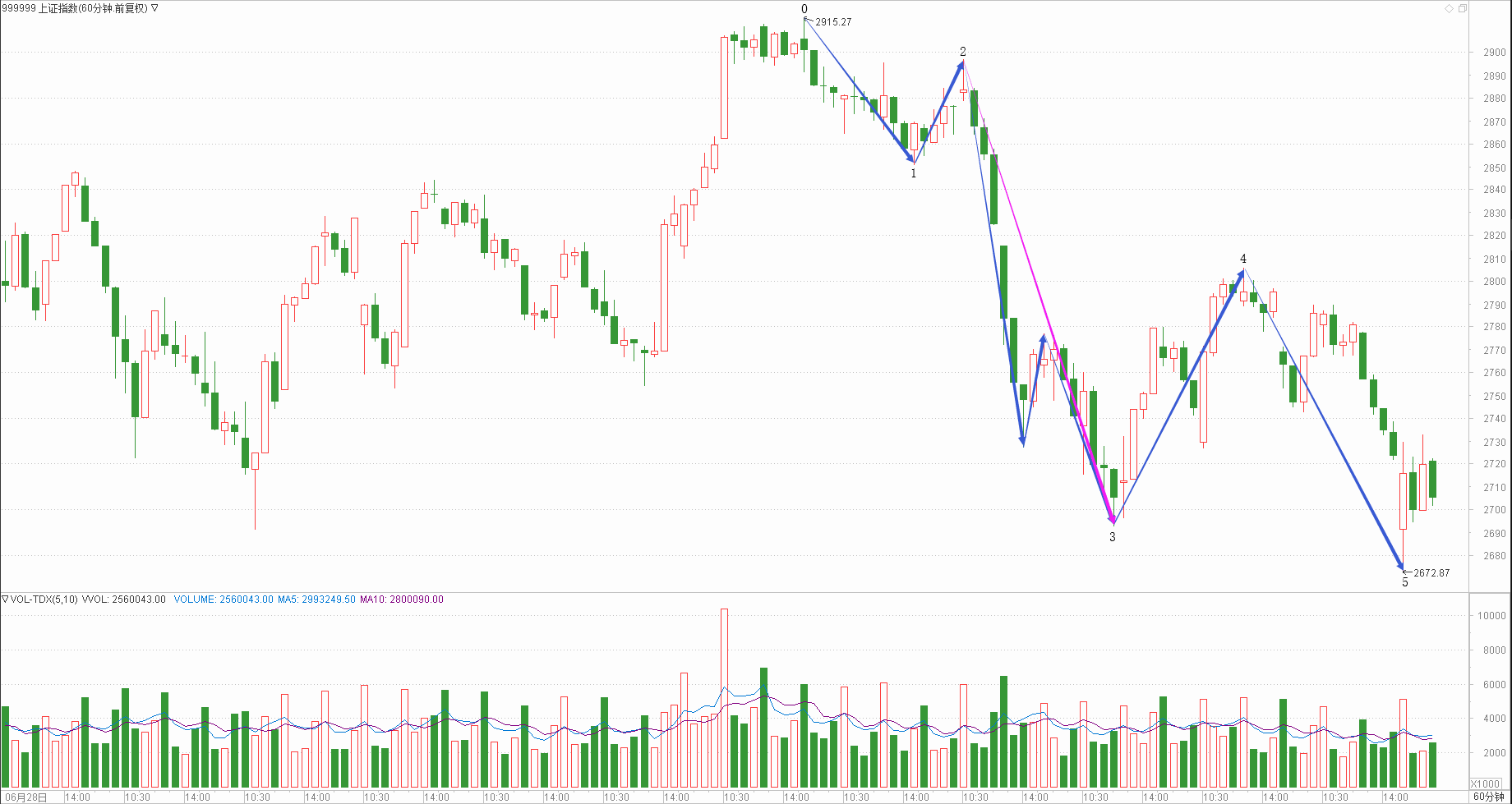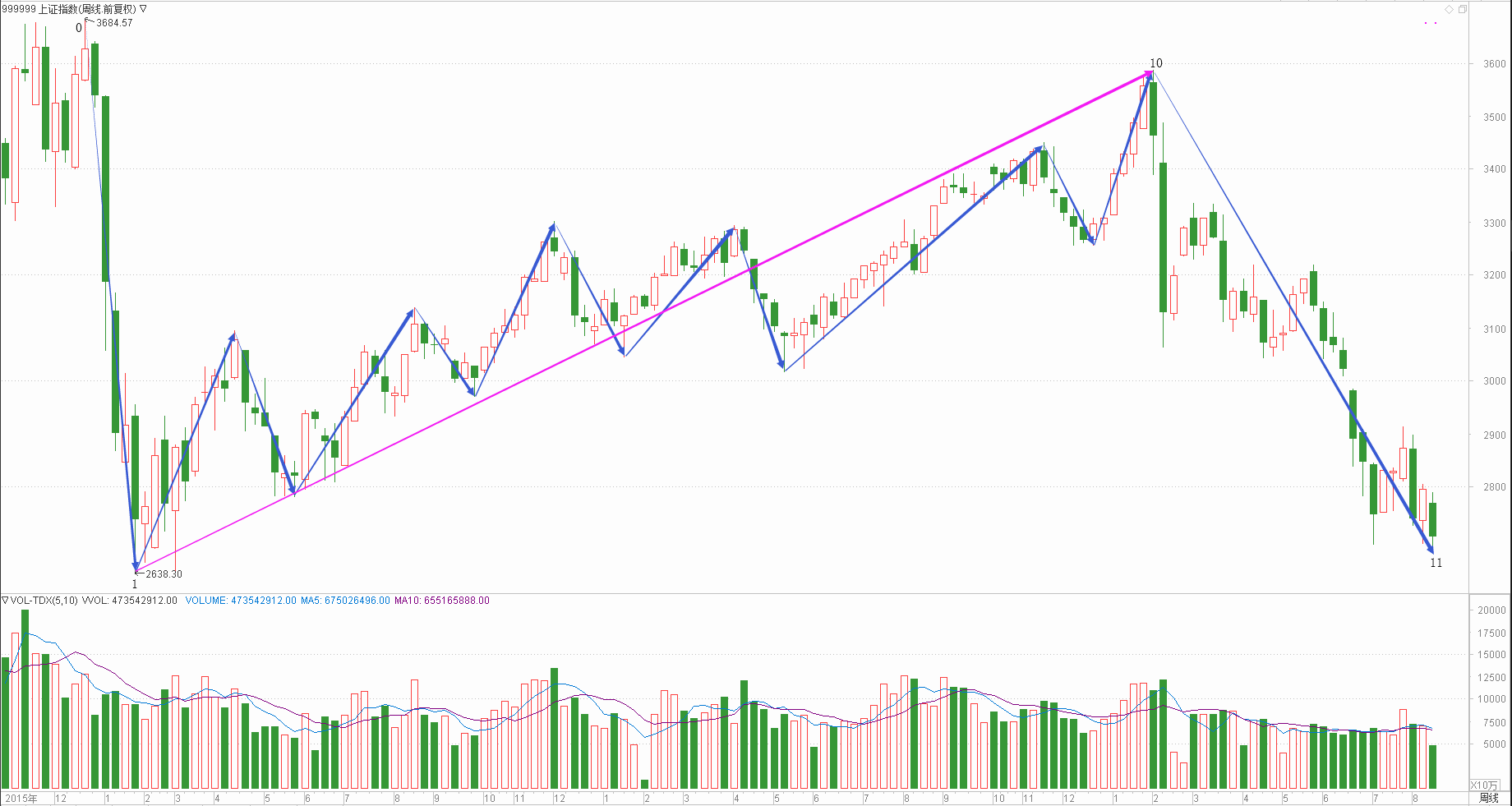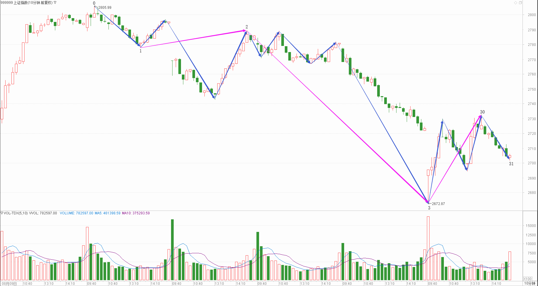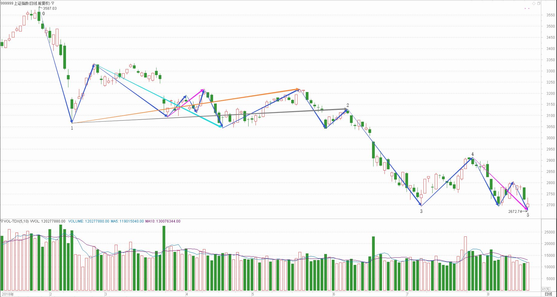 : 月线调整周线调整日线趋势时线趋势分线下跌(30+30+40+50+35)/5=37