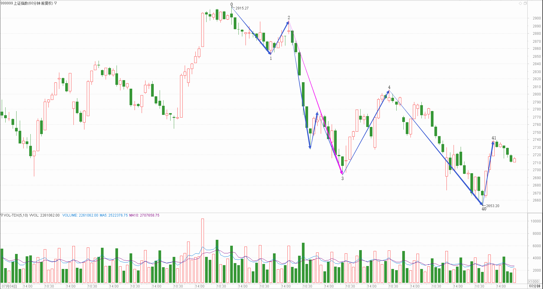 : 月线调整周线调整日线趋势时线下跌分线调整(30+30+35+25+30)/5=30