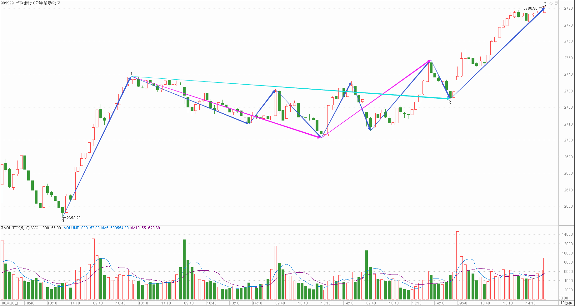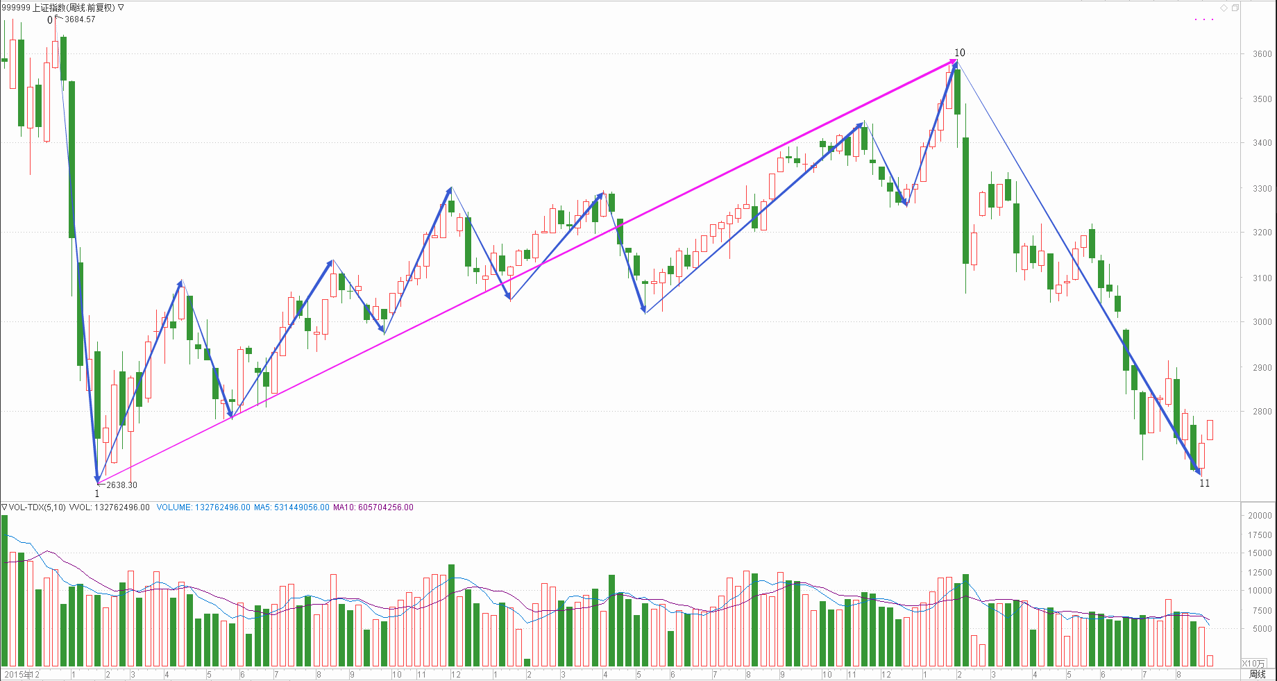 : 月线调整周线调整日线下跌时线下跌分线上涨(30+30+20+15+5)/5=20