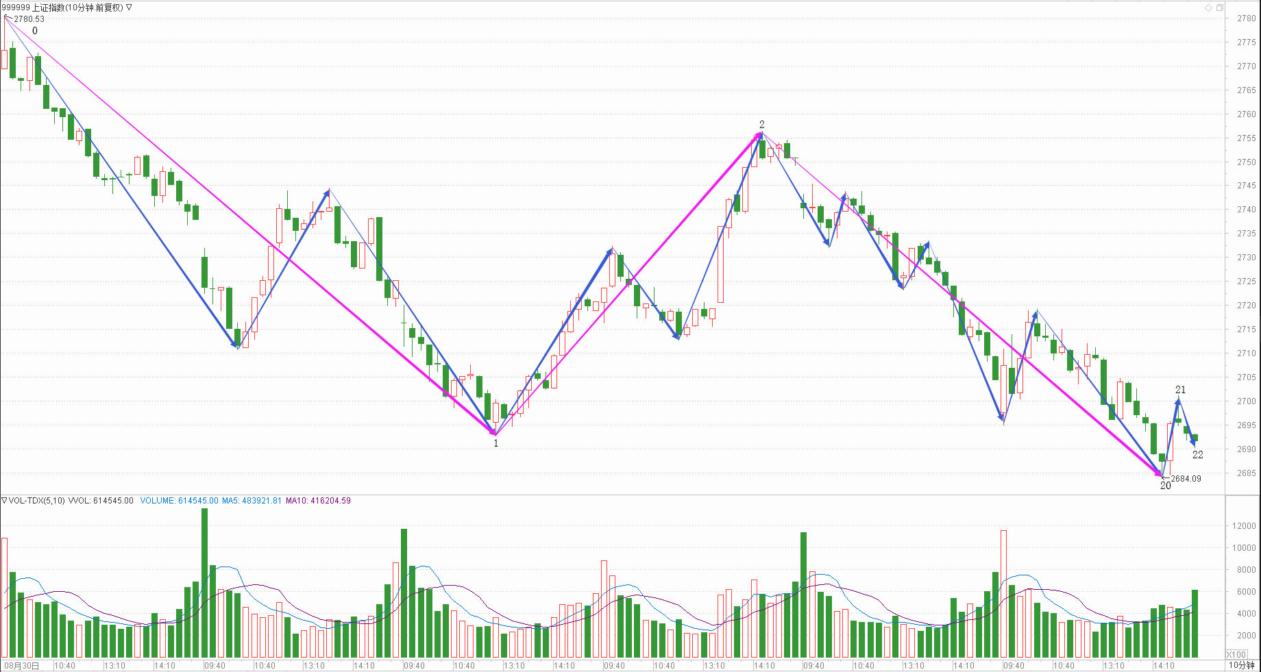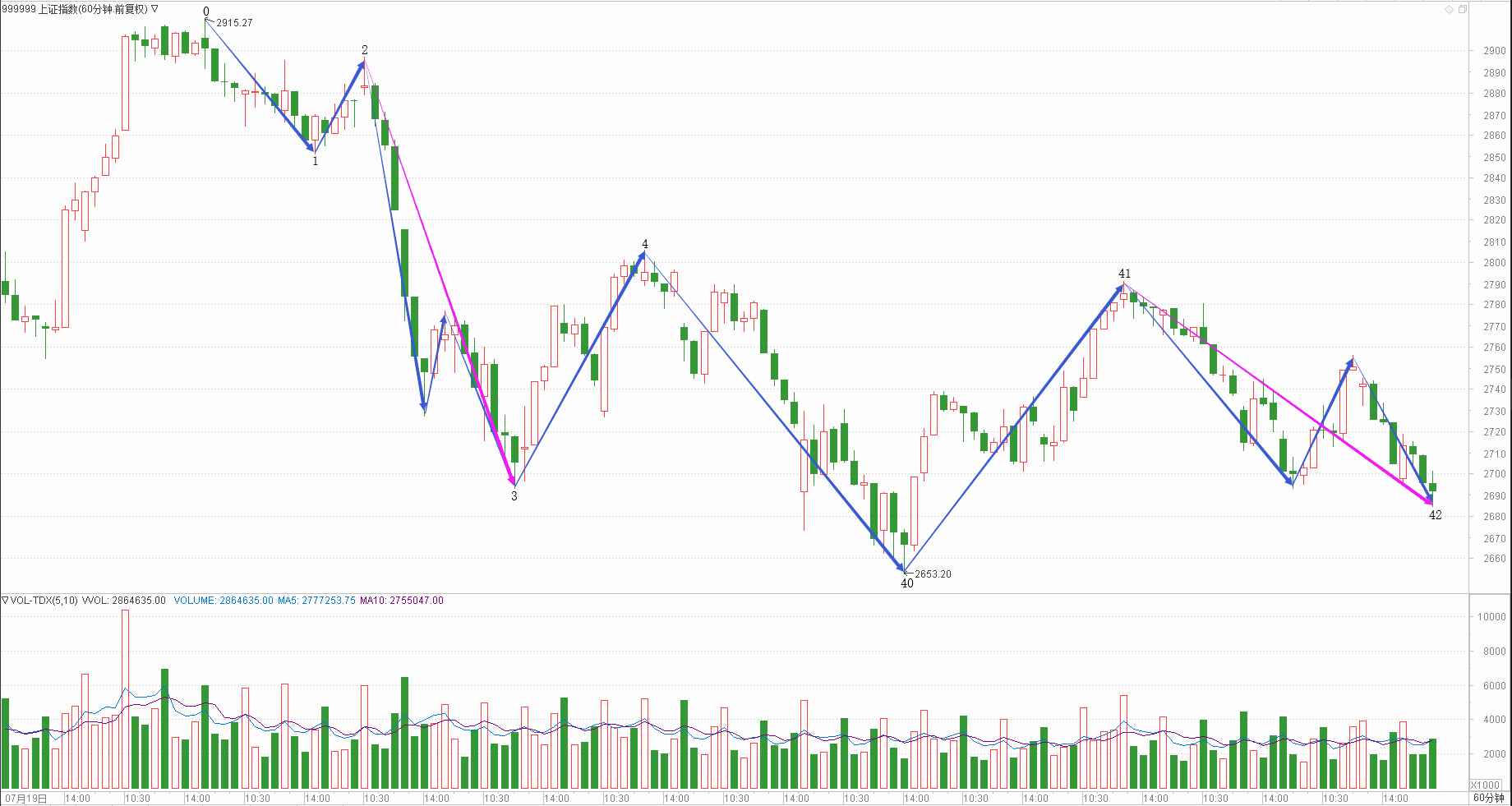: 月线调整周线调整日线下跌时线下跌分线中继(30+30+60+60+20)/5=40