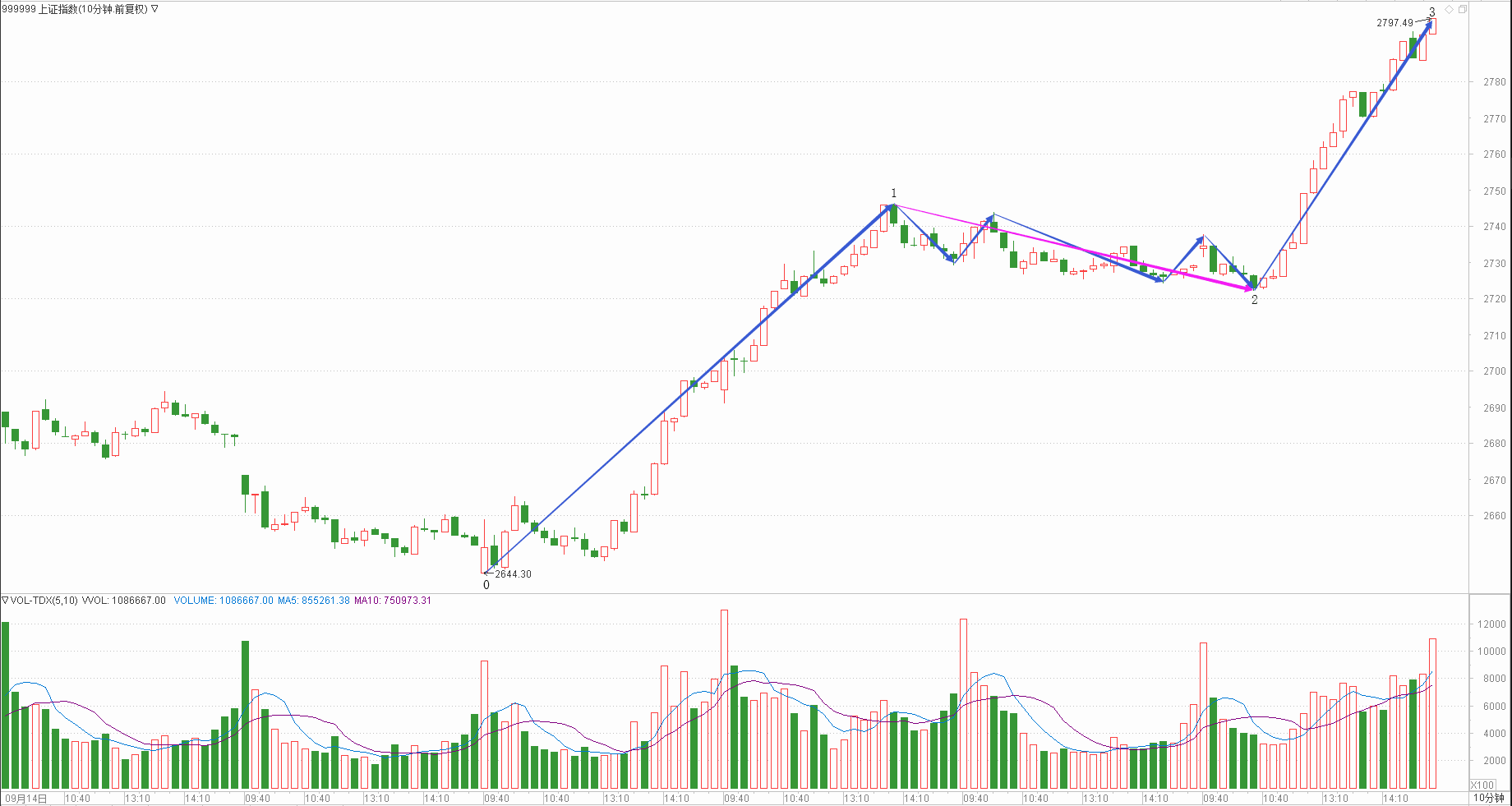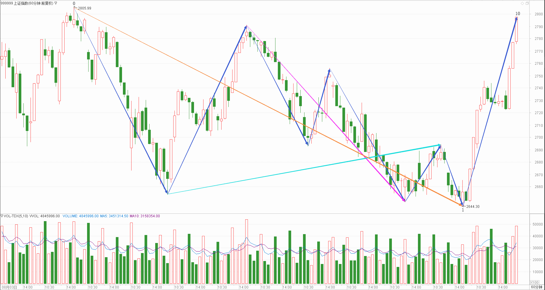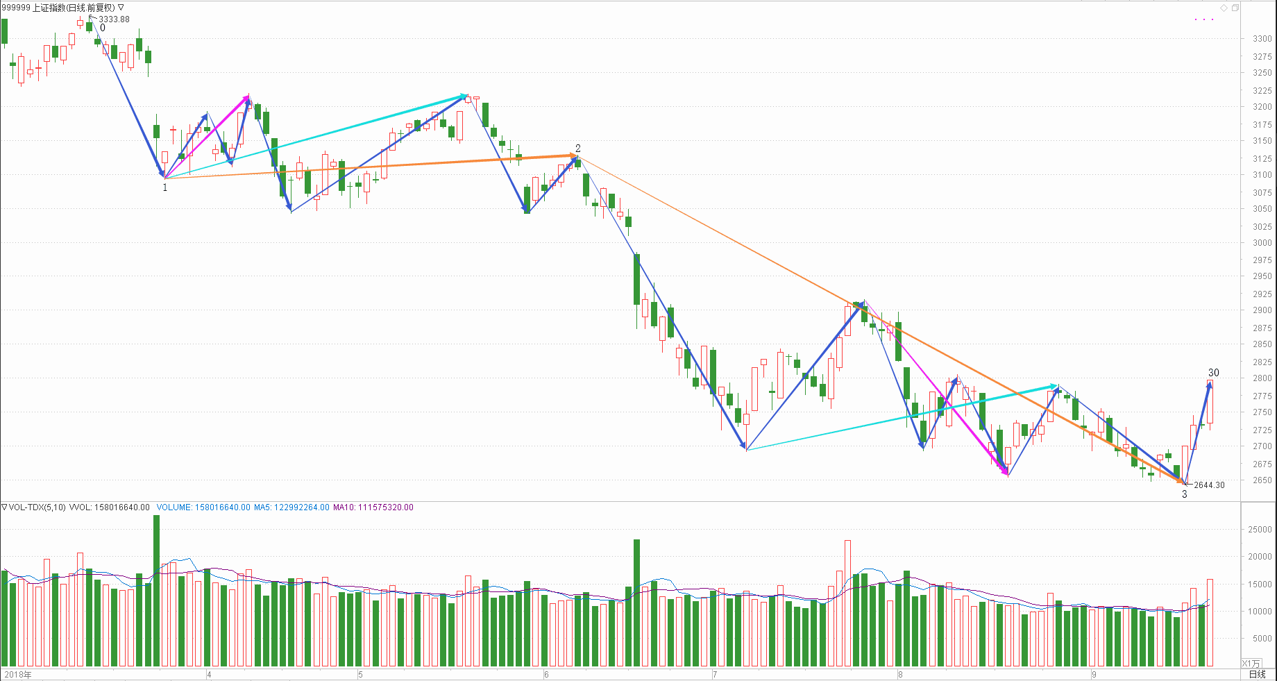 : 月线调整周线调整日线下跌时线回调分线上涨(45+40+30+20+20)/5=31