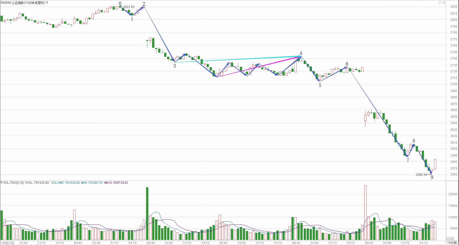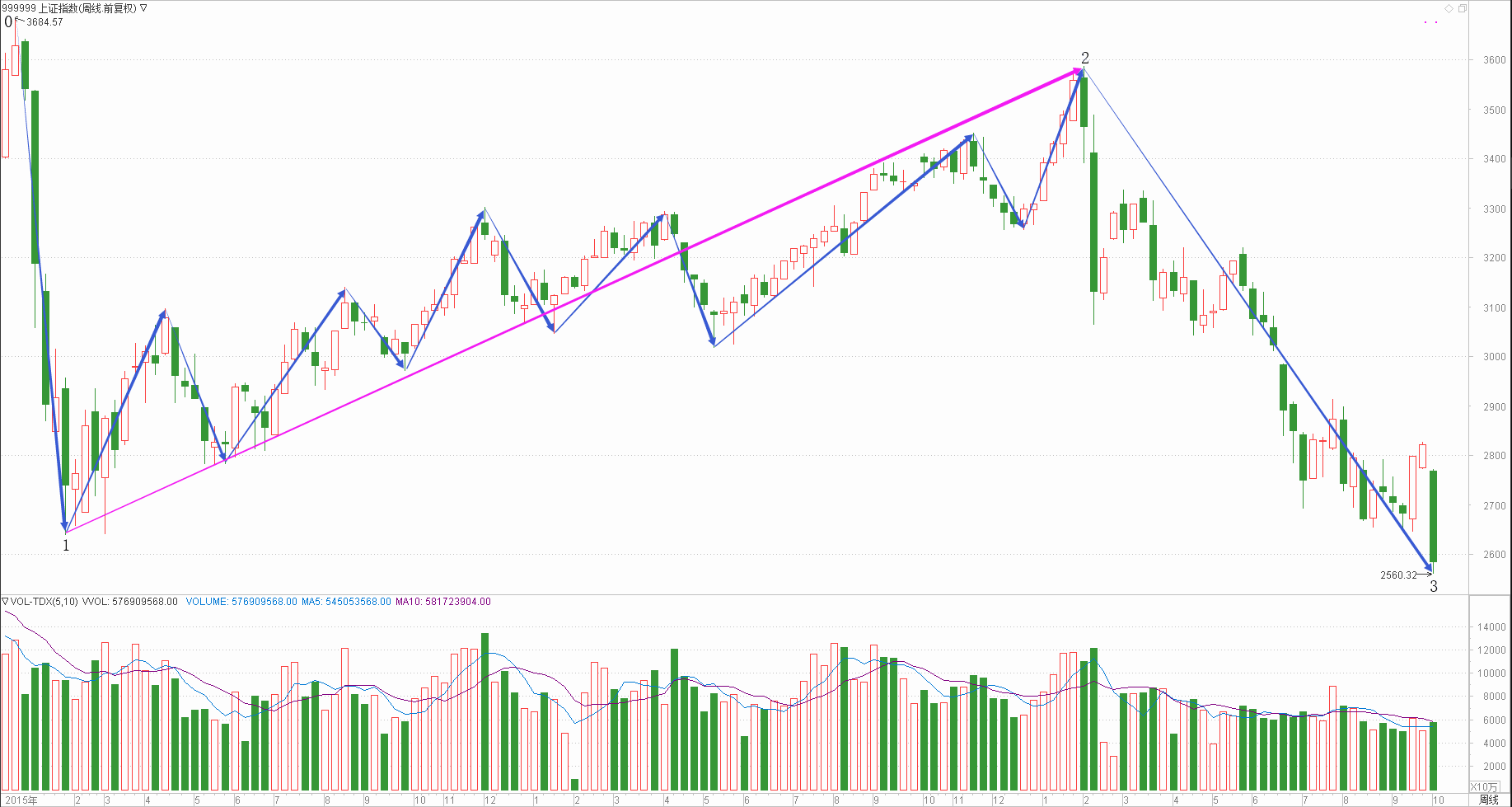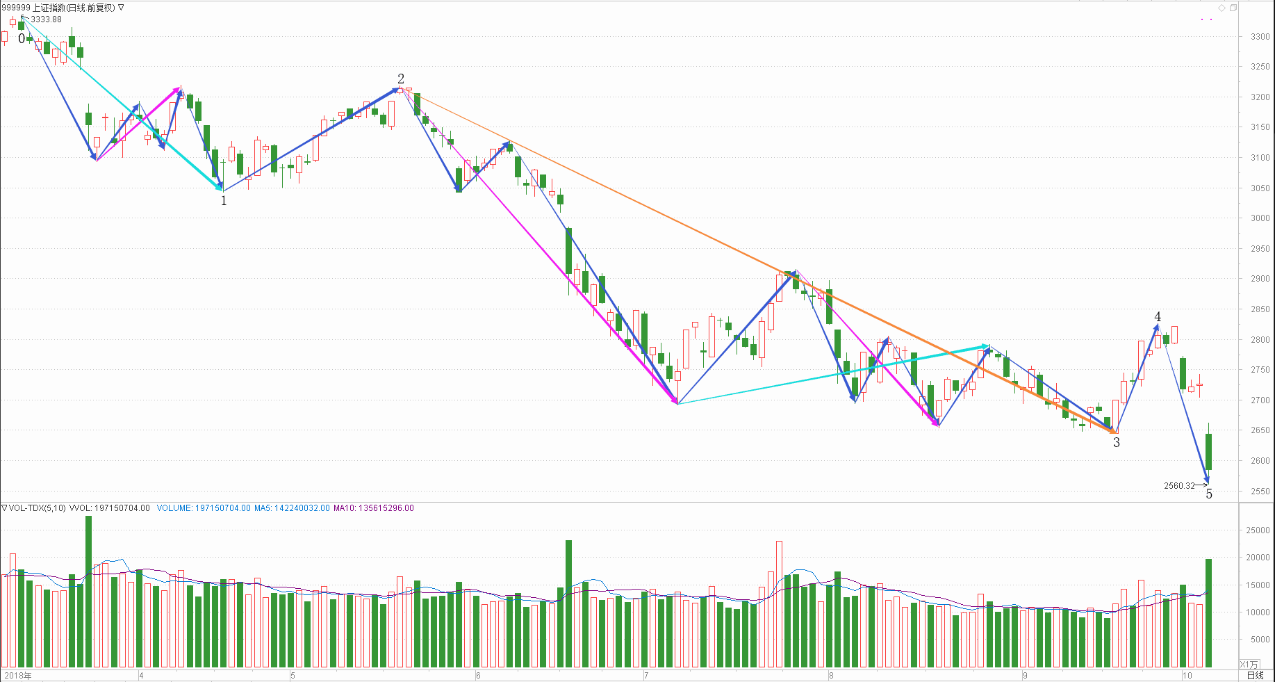 : 月线调整周线下跌日线趋势时线下跌分线趋势(40+50+30+30+20)/5=34