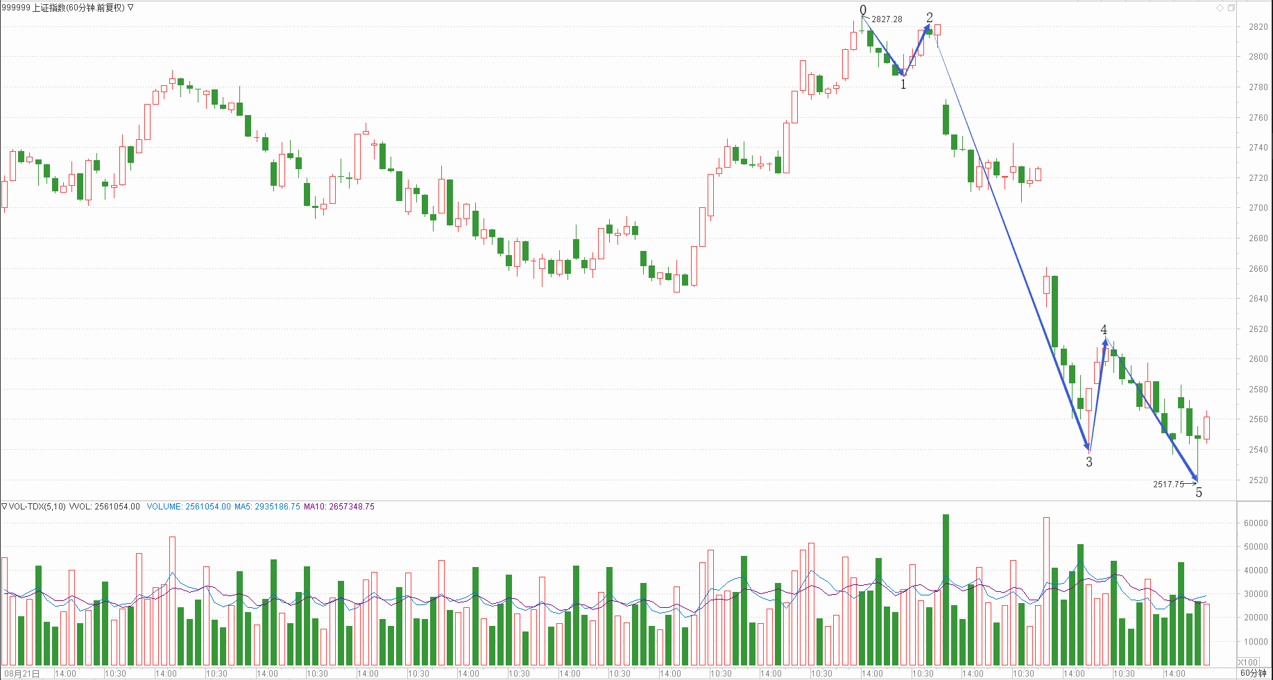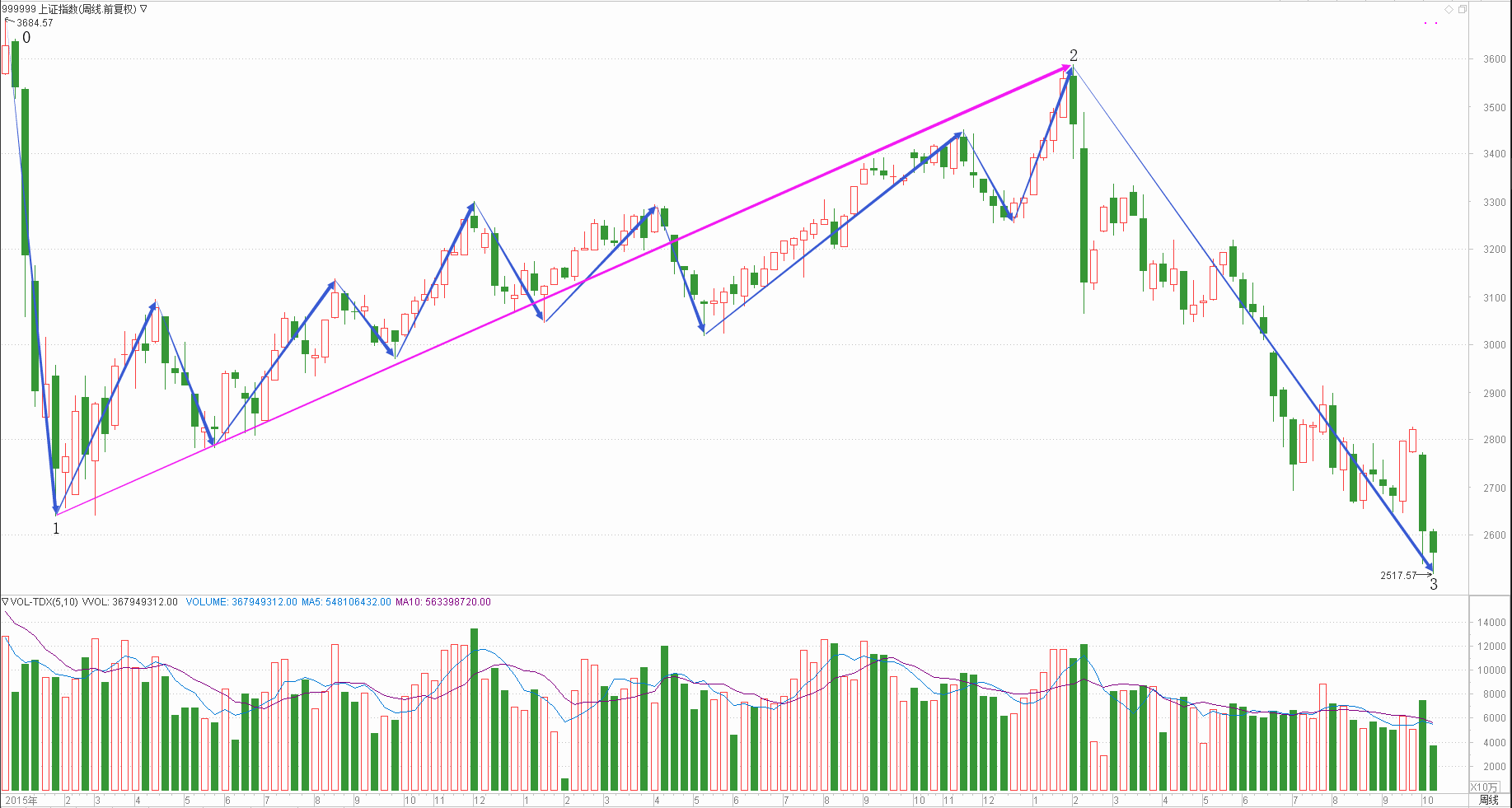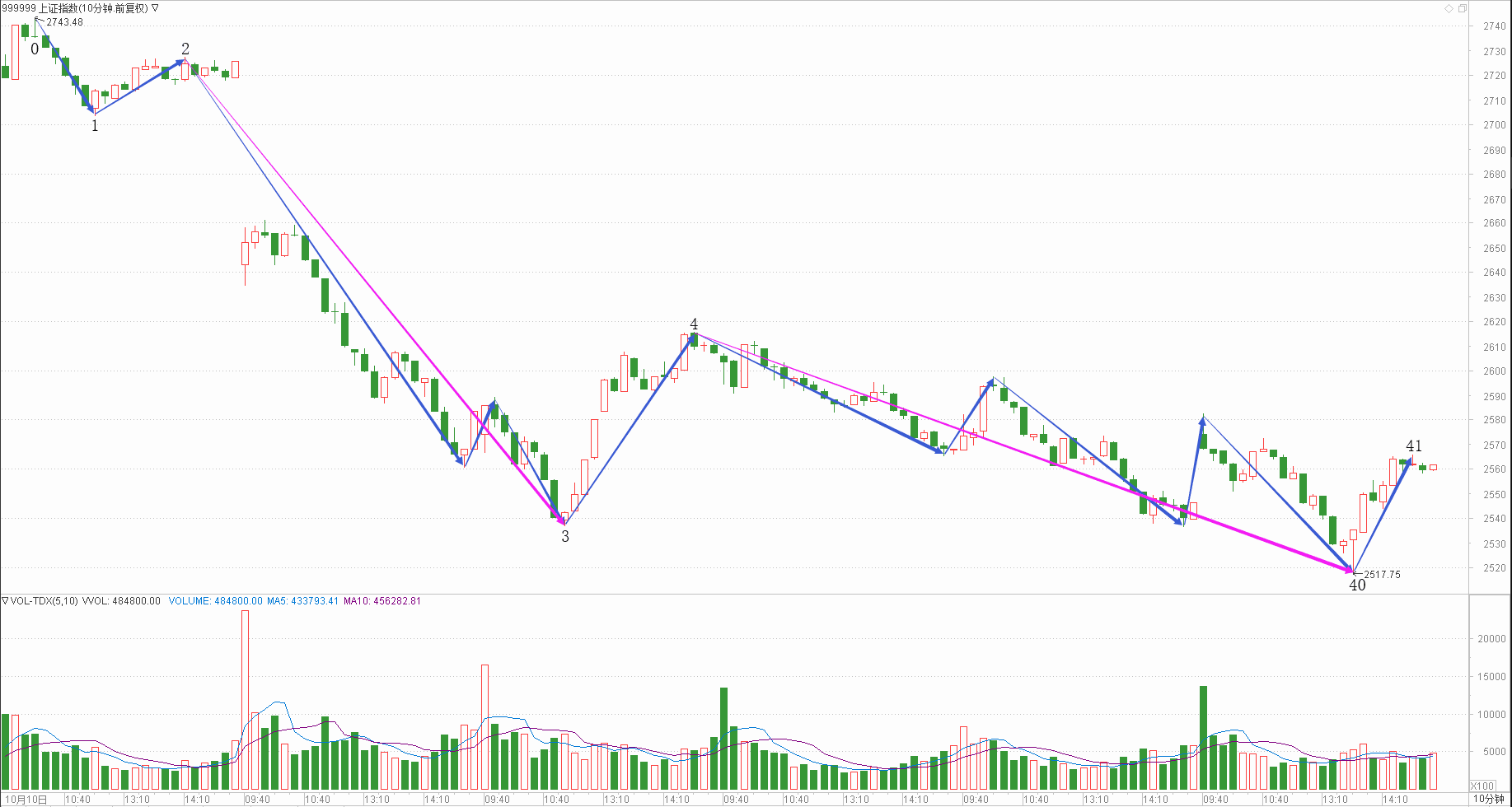 : 月线调整周线下跌日线趋势时线趋势分线下跌(40+40+50+40+15)/5=37