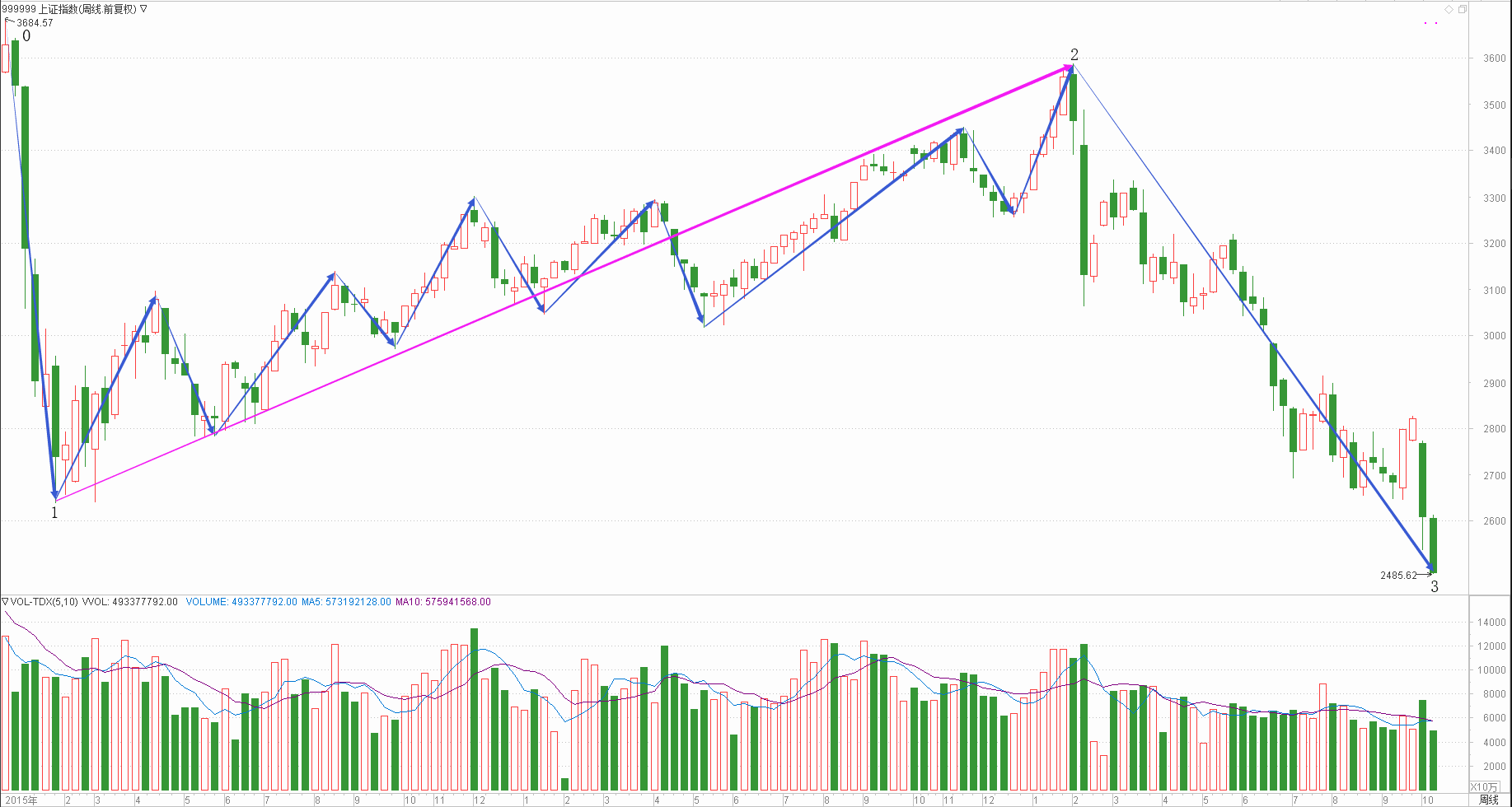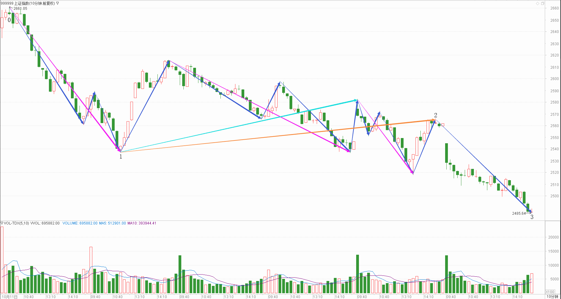 : 月线调整周线下跌日线趋势时线趋势分线下跌(40+40+20+30+50)/5=36