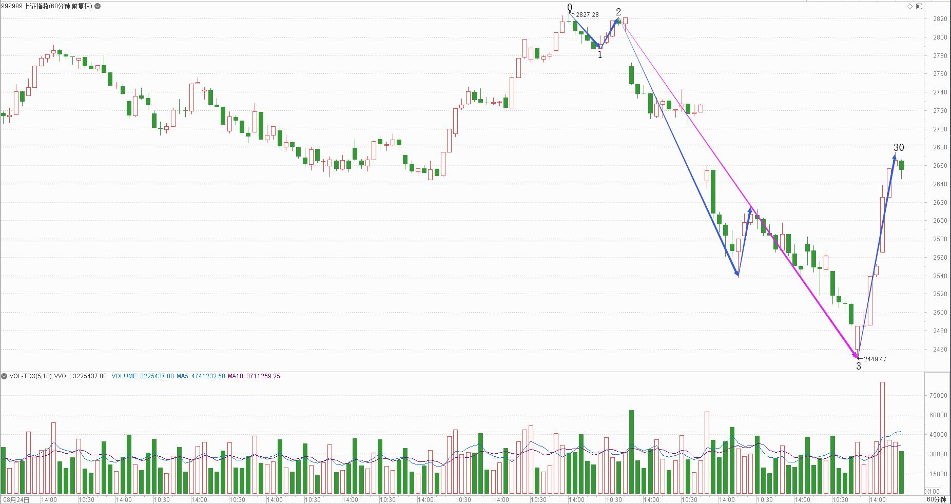 : 月线调整周线下跌日线趋势时线下跌分线上涨(40+40+20+15+25)/5=28