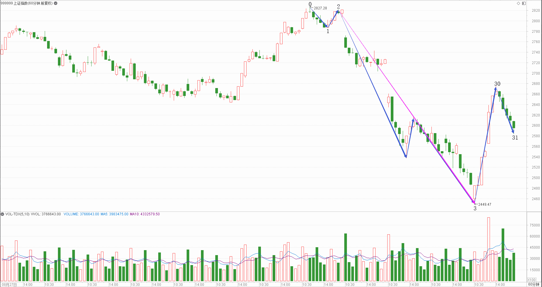 : 月线调整周线下跌日线趋势时线下跌分线上涨(40+40+20+20+25)/5=29